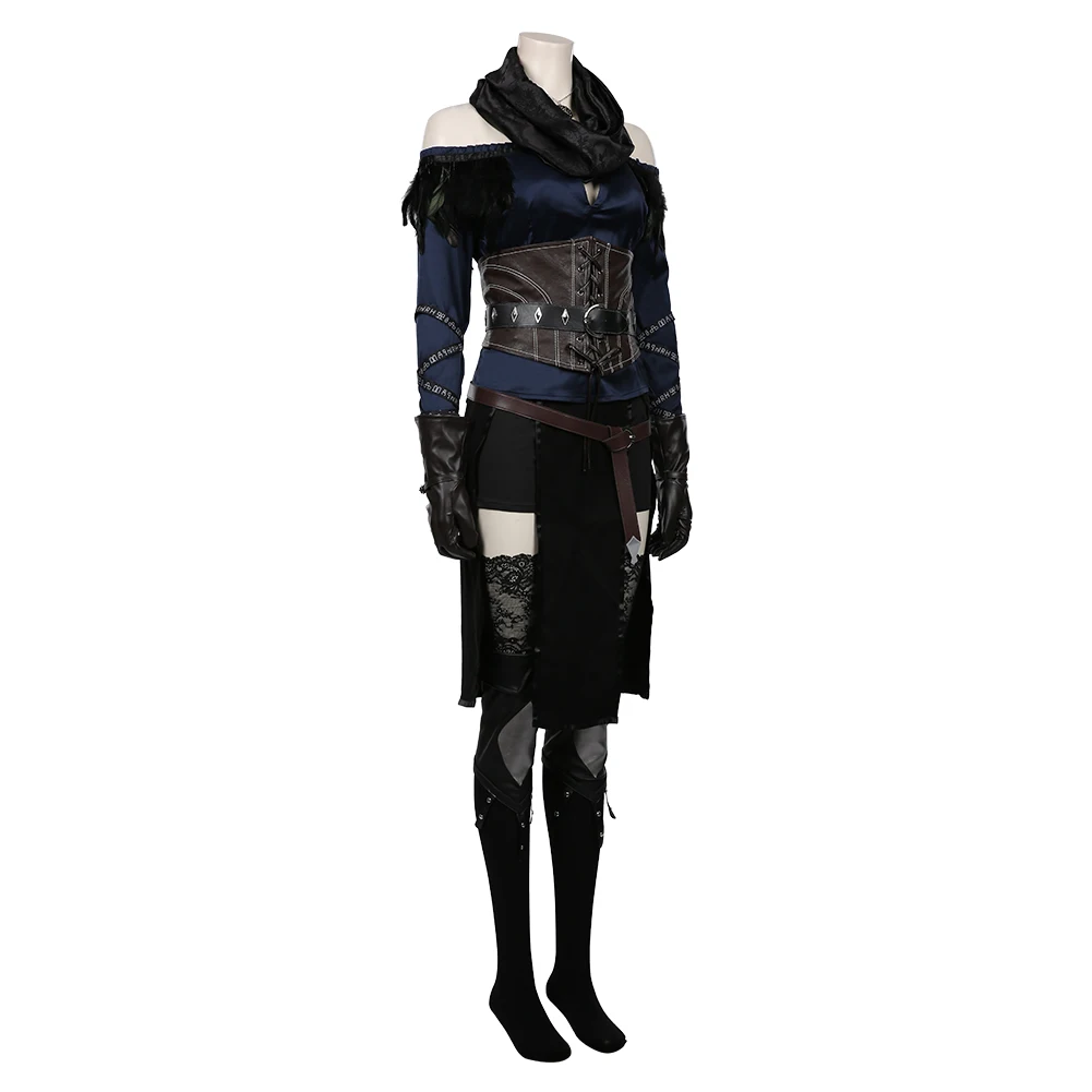 В комплект входит: пояс + перчатка + наколенник + ожерелье + шарф + юбка + чулки + топ + пояс с шаговым швом