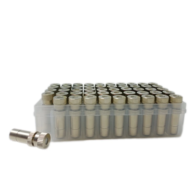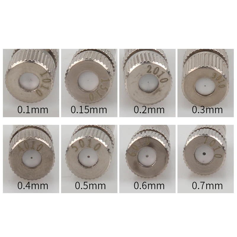 Name: Misting Nozzles Material: Brass Nickel-finished Color: Brushed nickel Orifice diameter: 0.1mm-0.6mm Operation Pressure: 5-15Bar