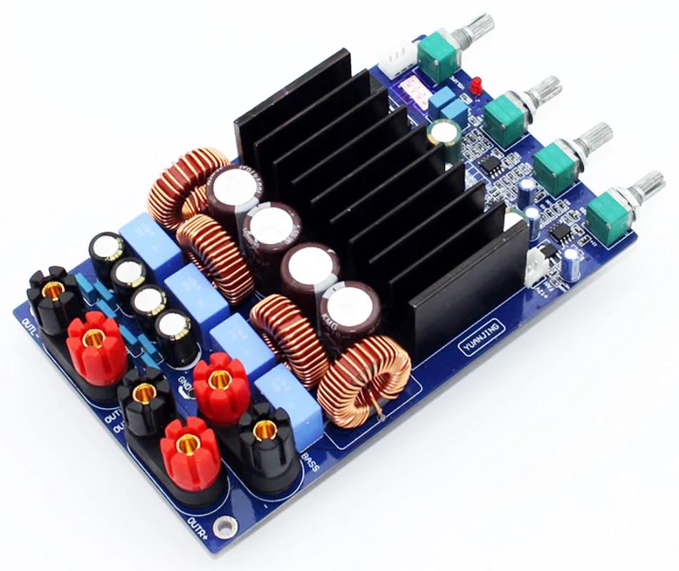 (1) Режим работы: Класс D (2) Ток покоя: 65 мА (3) эффективность работы: 88% (4) Выходная мощность: 300 Вт + 2*150 Вт/4 Ом 10% THD (5) Частотная характеристика: от 20 Гц до 20 кГц (6) динамический диапазон: >100 дБ (7) Отношение сигнал-шум: 100dB (транспортного средства на линии) (8) Рабочее напряжение: 48 В постоянного тока (9) Размер печатной платы: 150*95 мм (10) Функция потенциометра: слева направо 1. Громкость сабвуфера 2. Левый и правый каналы высокие частоты 3. Левый и правый каналы громкость 4. Общая громкость (11) Расстояние между потенциометрами: 22 мм * 22 мм * 30 мм (12) Вес: 380 граммов
