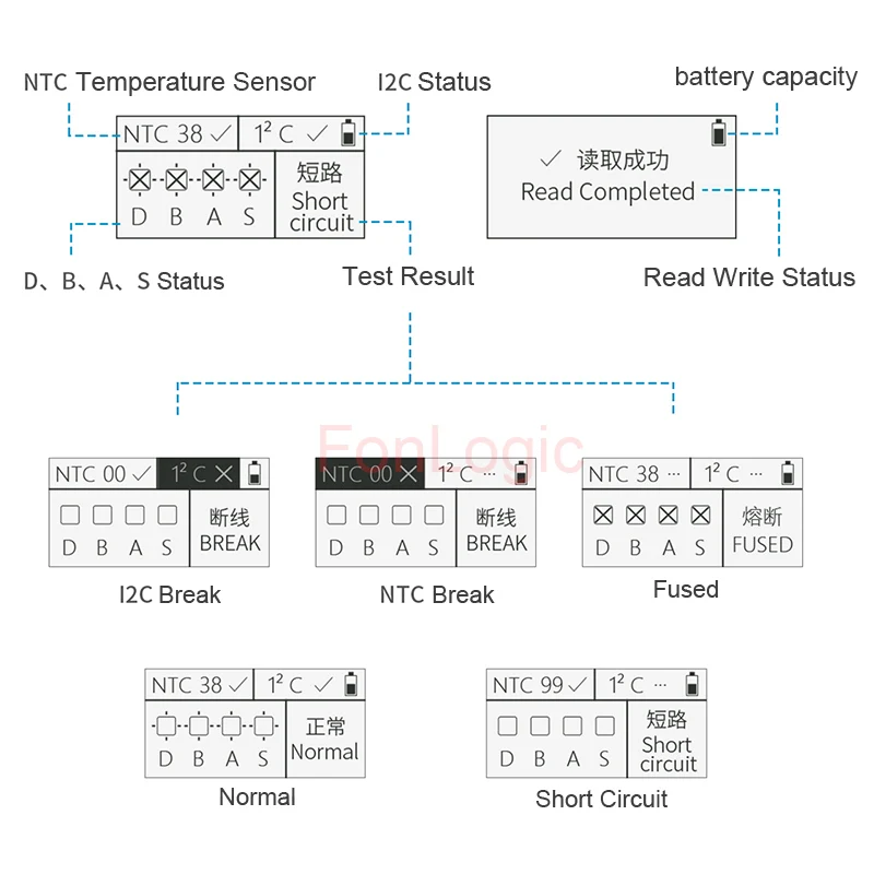Программатор 1,3 в 1, быстрая проверка распознавания лица («нормальный», «предохранитель отключен», «NTC отключен», «короткий»)