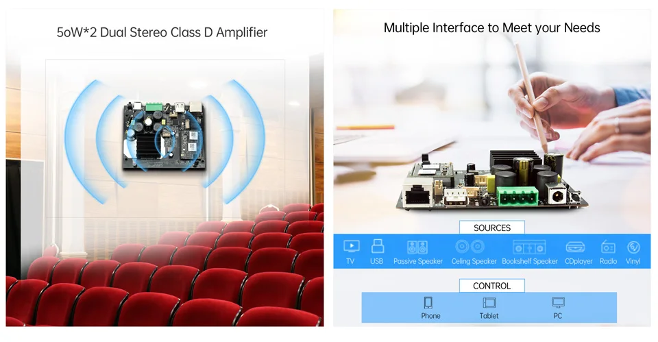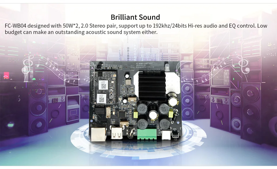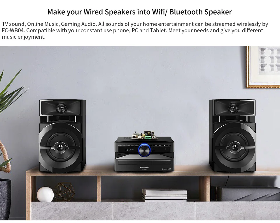 FC-WB04 AMP представляет собой беспроводной мульти-комнаты аудио усилитель цифровой усилитель класса D. Он имеет Wi-Fi, Ethernet и Bluetooth 5,0. С FC-WB04 ампер, так будет проще для вас, чтобы начать Потоковую передачу музыки от ваших умных устройств, USB, NAS, третьей вечерние приложений, которые поддерживают DLNA, UPnP, протоколы, И услуги онлайн-потоковой передачи на вашу аудиосистему. Его высокая производительность позволяет воспроизводить аудио без потерь из местного хранилища или от дыхательного, qoпредусмотренного в приложении Muzo player. Еще одна особенность-функция multiroom и multizone для беспроводного воспроизведения той же музыки во всех комнатах синхронизации или разной музыки в разных комнатах.