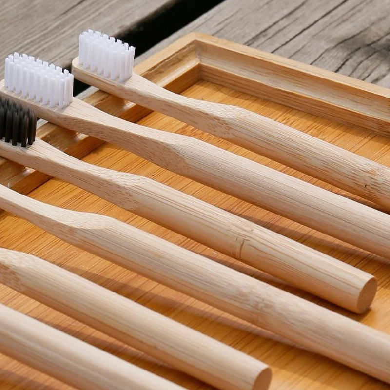 10 шт. в упаковке, однотонная зубная щетка из натурального бамбука, круглая ручка, Детская жесткая мягкая щетина для взрослых, зубная щетка, Экологически чистая, нулевая отходы