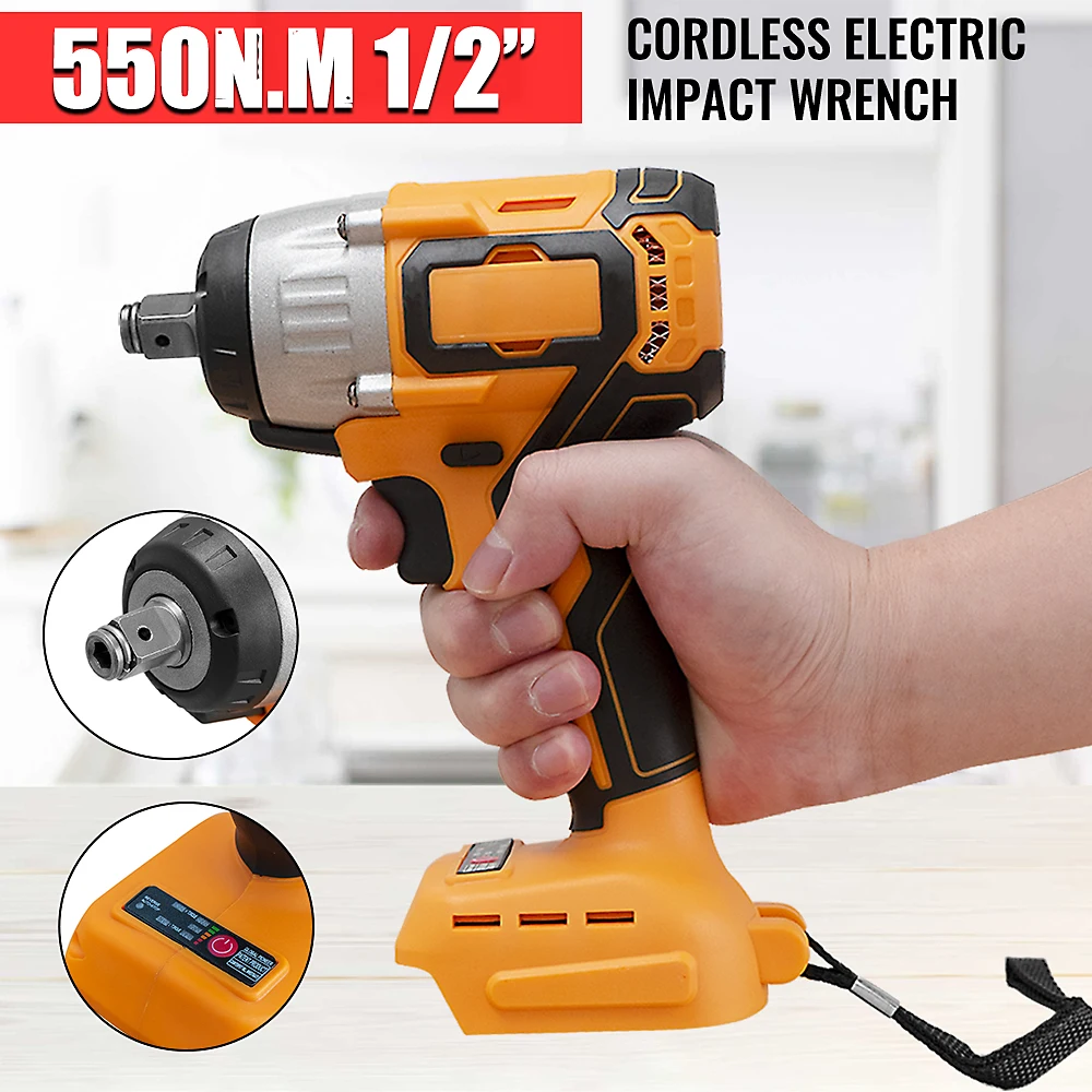 Электрический бесщеточный ударный гайковерт 550 Н. М, перезаряжаемый торцевой гайковерт 1/2 дюйма, электроинструмент светодиодный светильник кой для батареи Makita 18 в