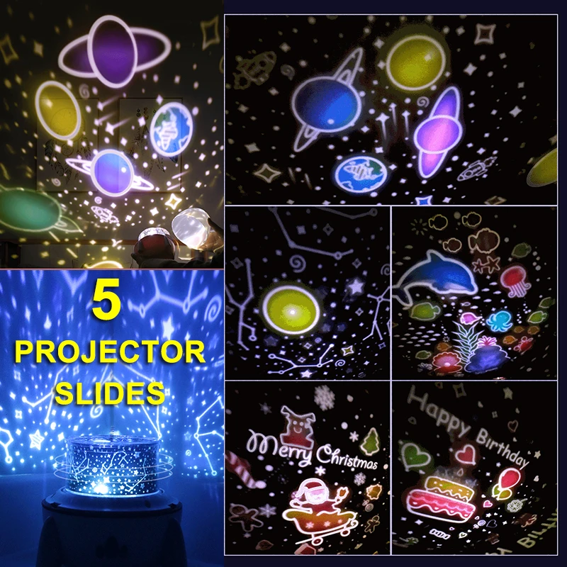 * Нанесите пять слайдов для проектора, вы можете использовать его в качестве домашнего декора, интерьерной лампы, а также на день рождения и рождественскую вечеринку, широко используется для дома и вечеринки!
