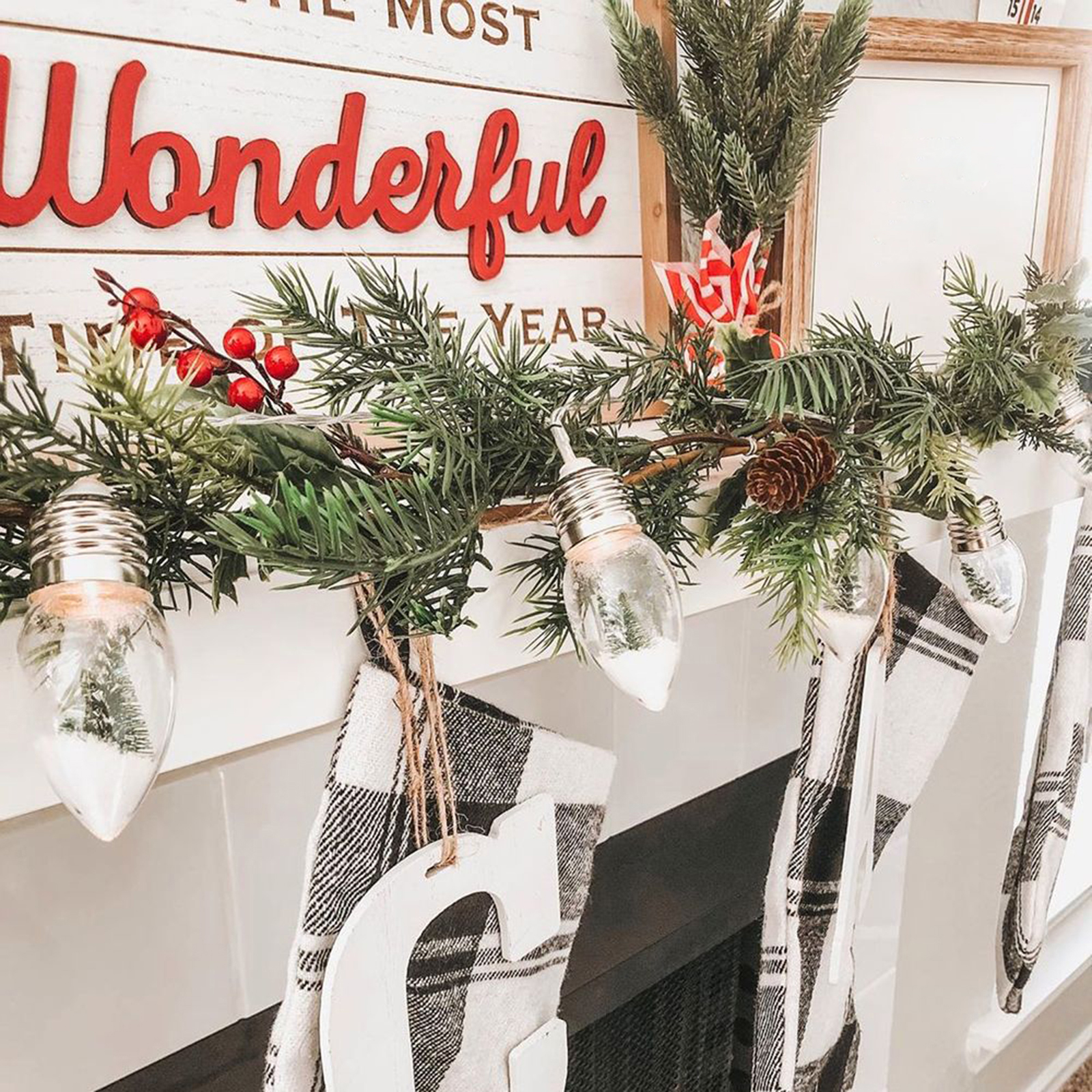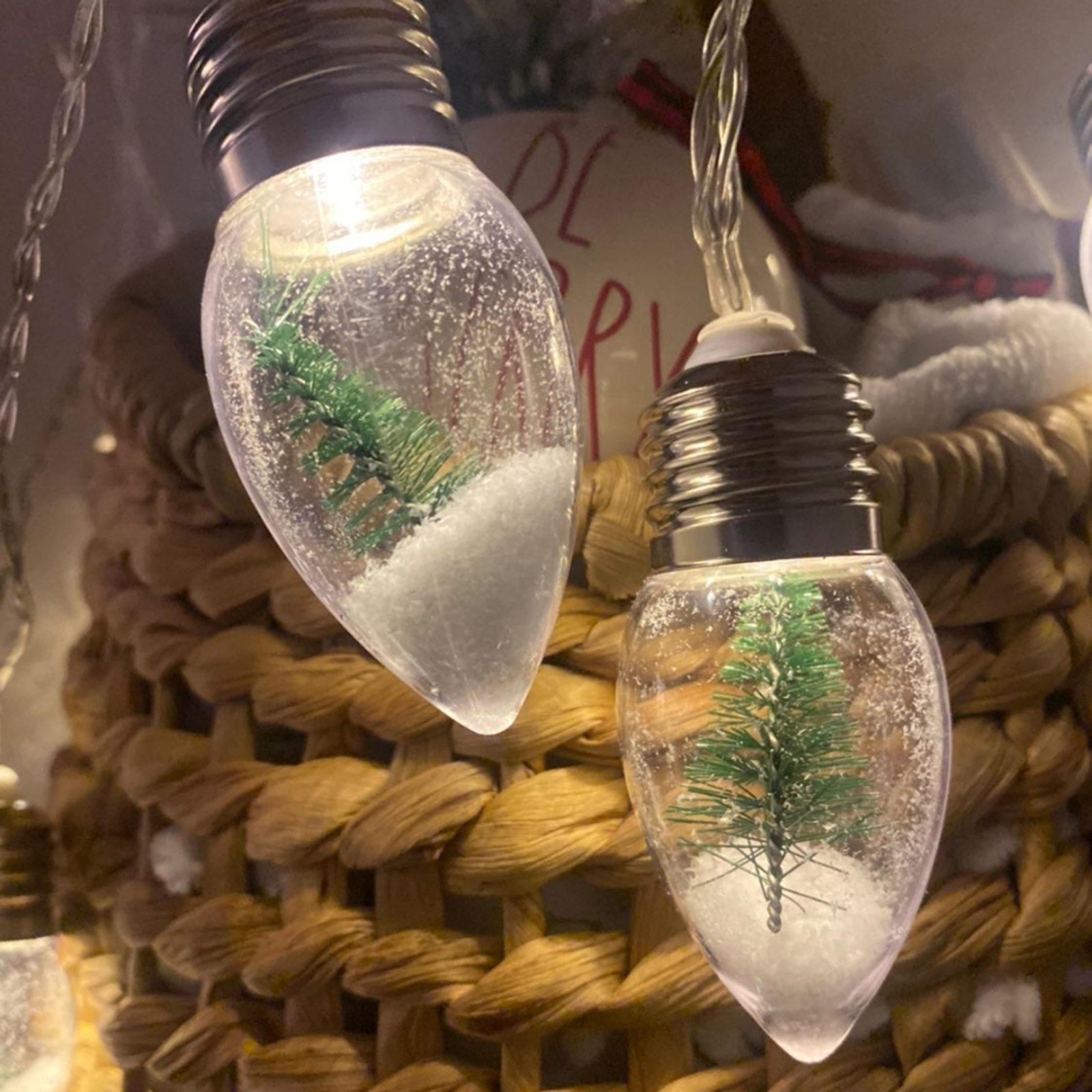 1. Аккумулятор. Требуется 2 батарейки АА (не входят в комплект)-струны оснащены снегом и миниатюрной рождественской елкой внутри каждой лампы, что делает каждый светильник похожим на маленький праздничный мир.