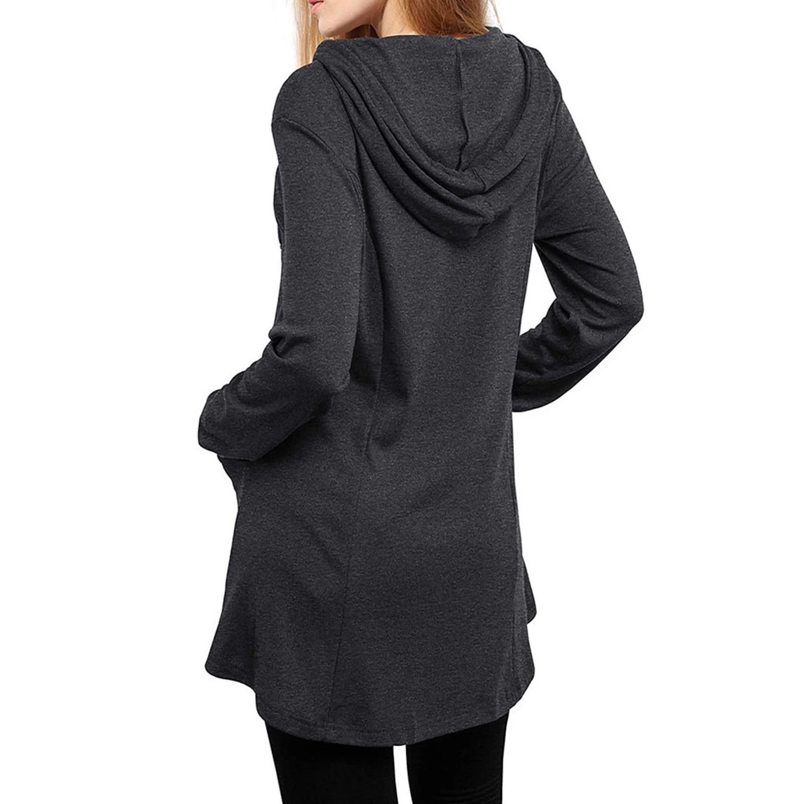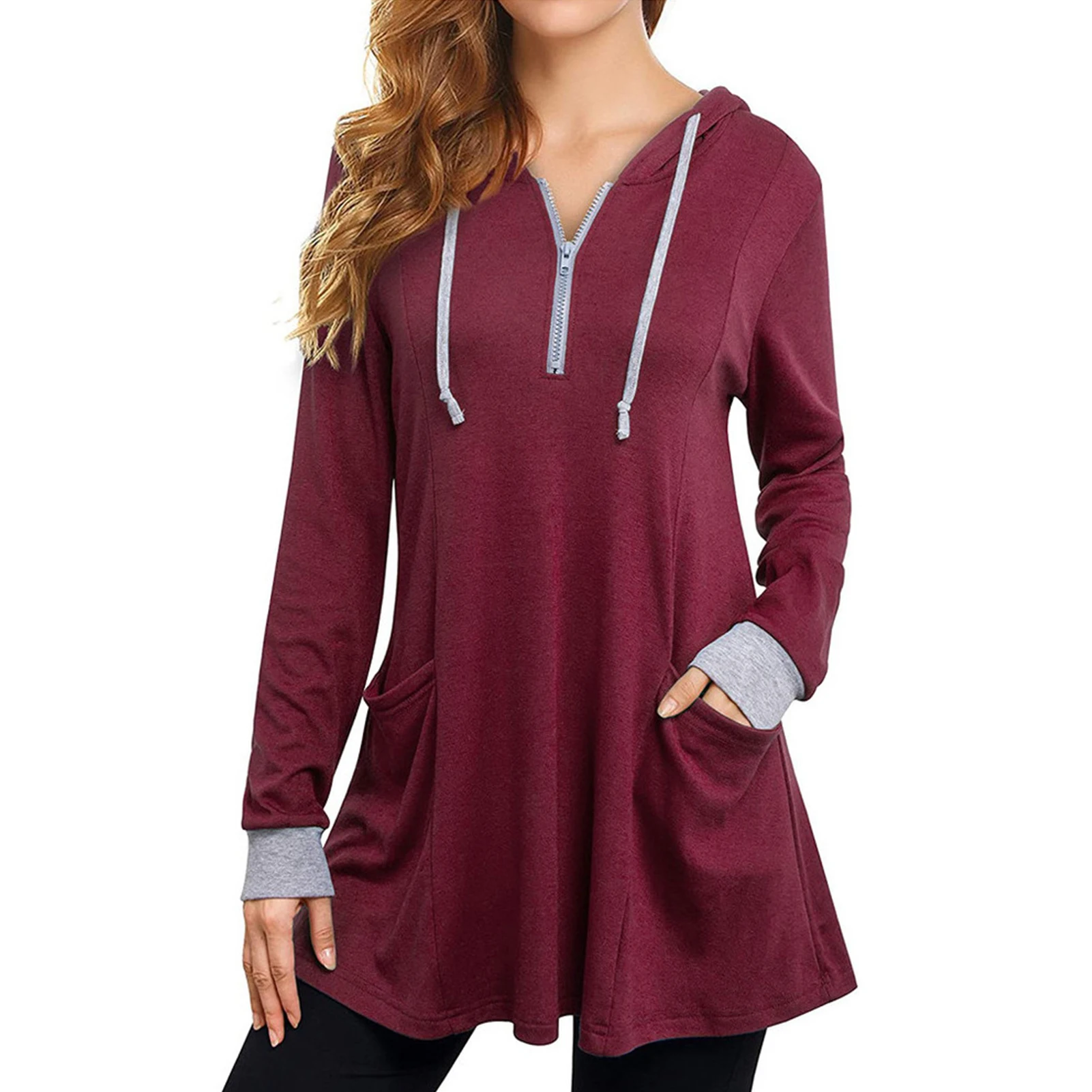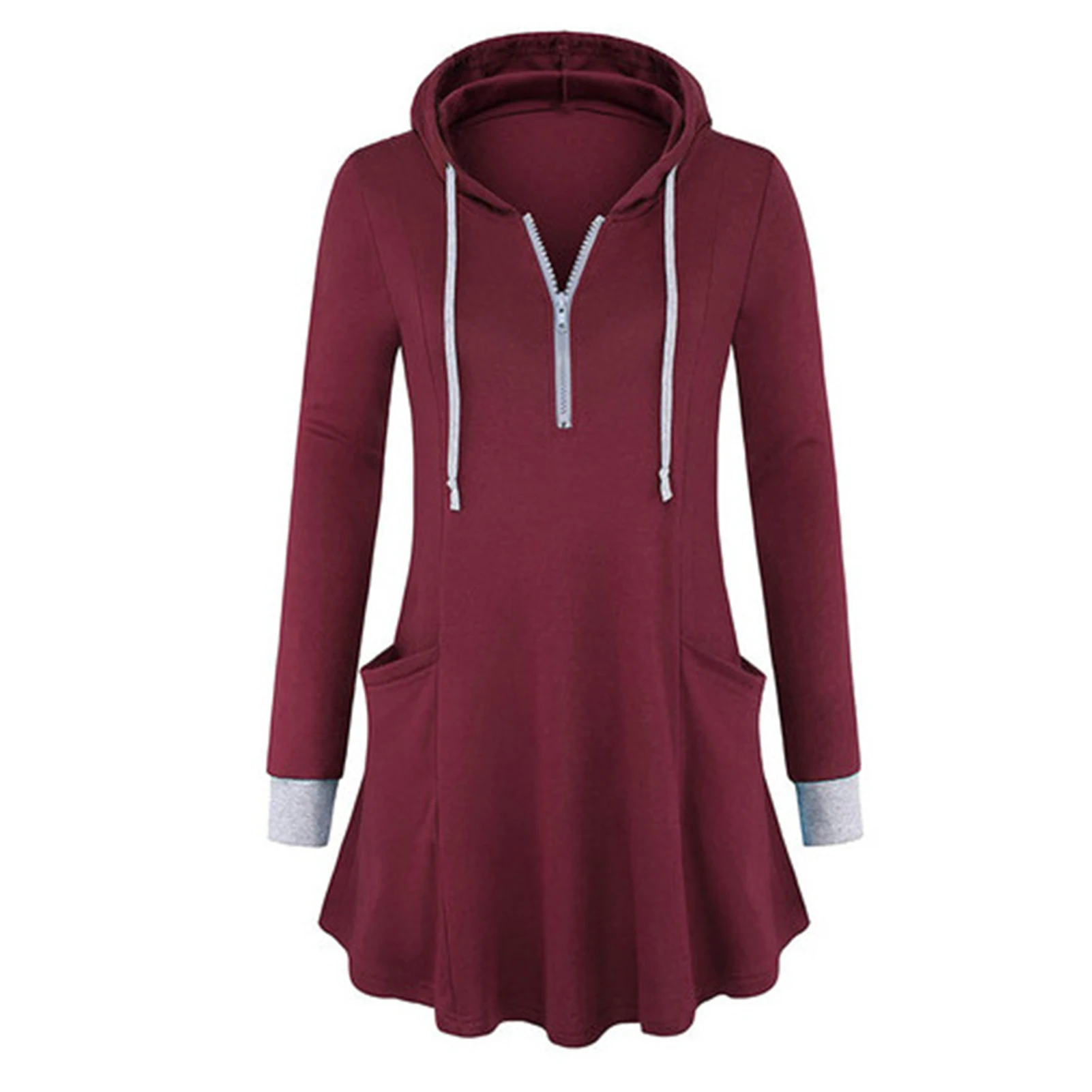 Осенняя Женская Повседневная Туника с длинным рукавом, толстовка на молнии с карманом, пуловер