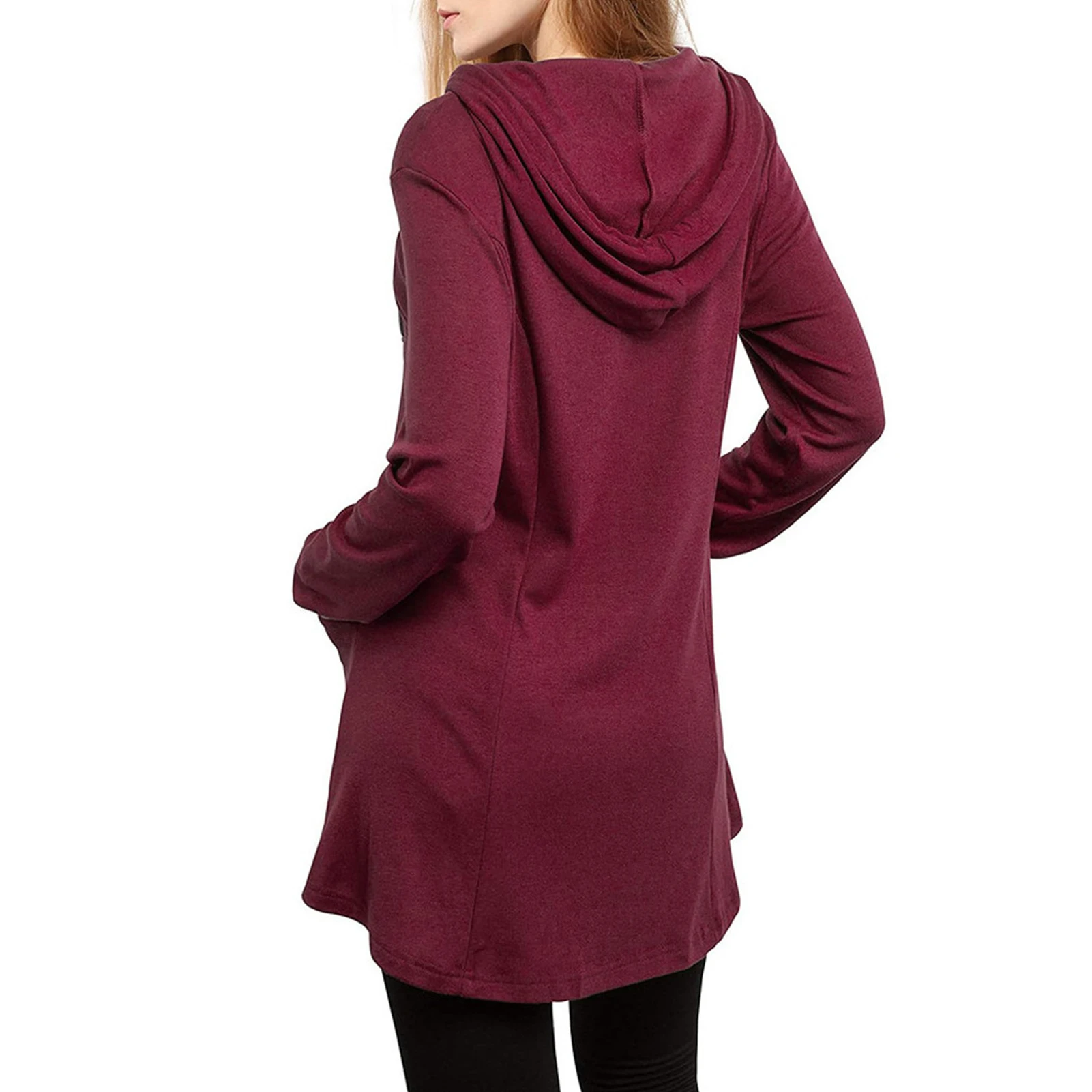 Эта толстовка достаточно длинная, чтобы прикрыть бедра.