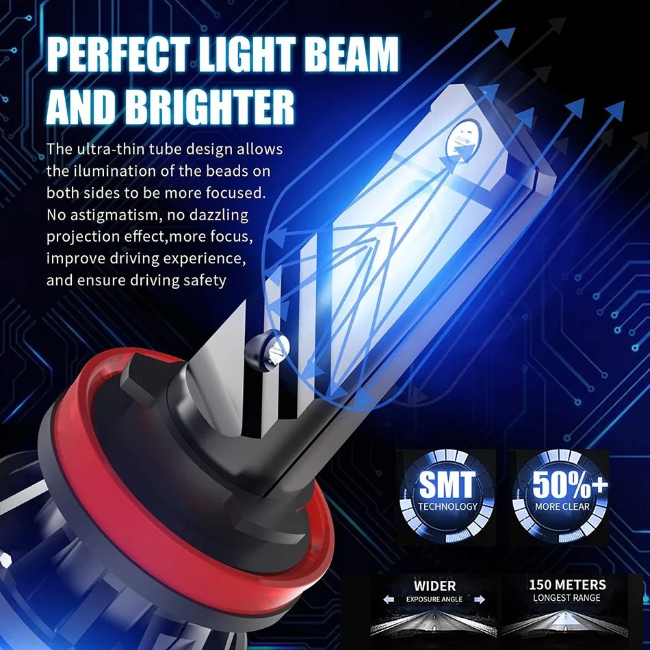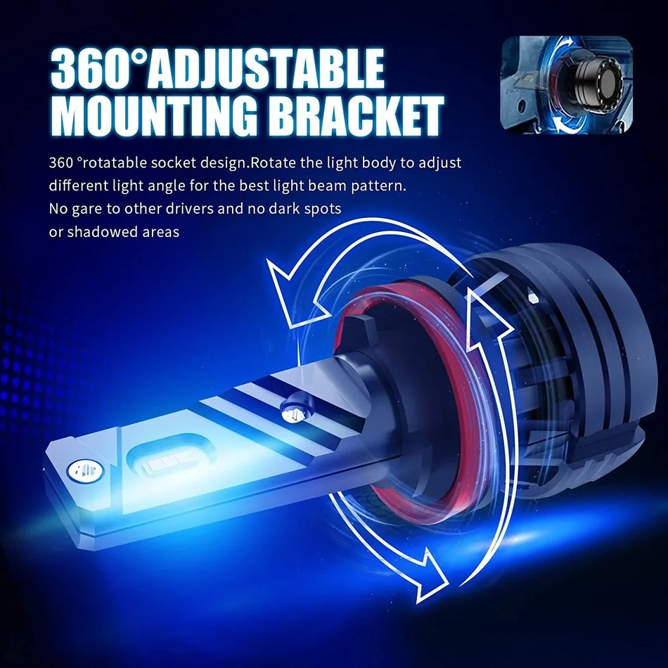 Модель: H8 H9 H11 H16 японский автомобиль Входная мощность: 60 Вт/пара, 30 Вт/лампа Рабочее напряжение: 9-32 В постоянного тока (подходит для транспортных средств 12 В, 24 В) Световой поток: 12000 лм/за пару, 6000лм/лампочка Степень защиты: IP67 водонепроницаемый Установка: просто подключи и работай Светодиодный чип: Заказной чип высокой яркости CSP AILEO (не обычный CSP) Цветовая температура: 6000K белый Однородный светильник на 360 °: конструкция из массива обеспечивает равномерный светильник на 360 ° без каких-либо темных пятен, обеспечивает более широкий угол обзора Определенный рисунок луча, нет темных пятен, нет бликов, не слепит встречных водителей Тип тепловыделения: авиационный алюминий 6063 по последним тенденциям теплоотвод технологии с 10000 RPM turbo Вентилятор способствует эффективному охлаждения Стабильная производительность при любых погодных условиях Управление жизни: продленный срок службы более 50000 часов при минимальном светильник распада