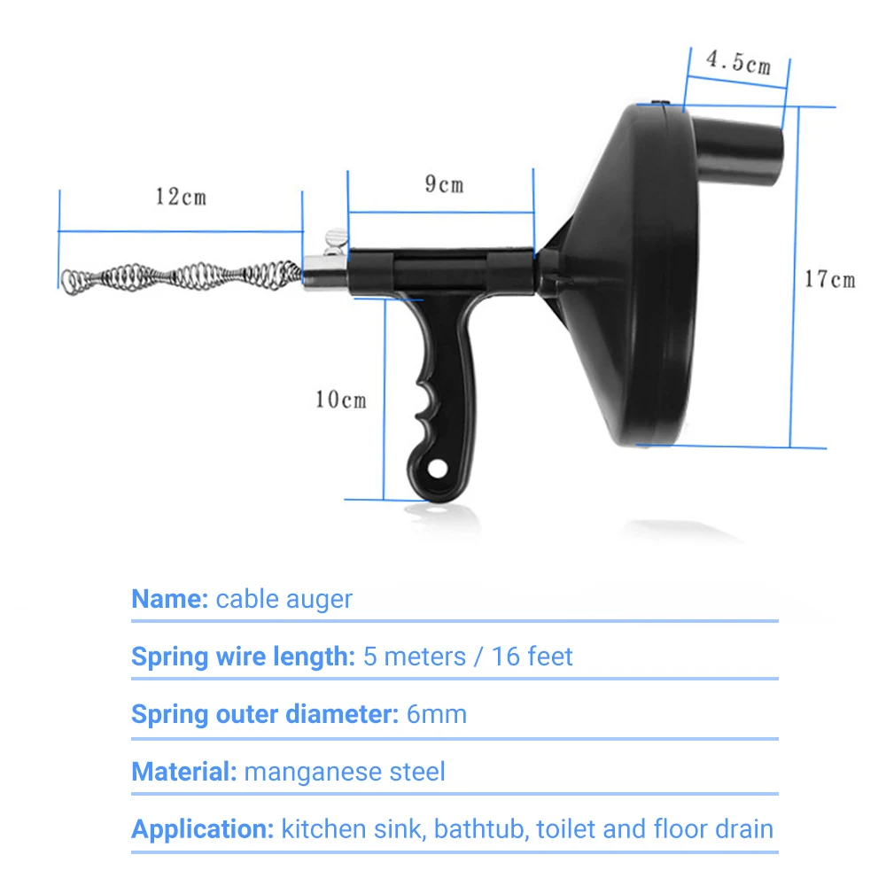 С кабелем длиной 5 метров/16 футов, этот кабельный шнек предназначен для разбивания кухонной раковины, ванны, туалета и слива полов и т. д. Полезный инструмент, который пригодится и избавит вас от многих неприятностей.