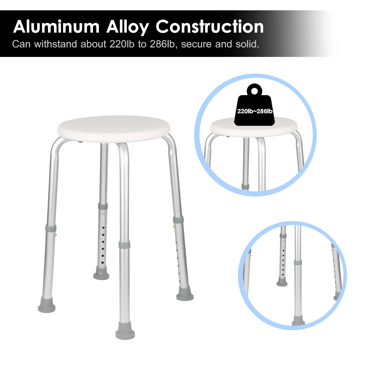 Этот регулируемый стул легкий и водонепроницаемый, нескользящий и устойчивый, хороший выбор для пожилых людей, чтобы обеспечить комфортную и безопасную ванную комнату.