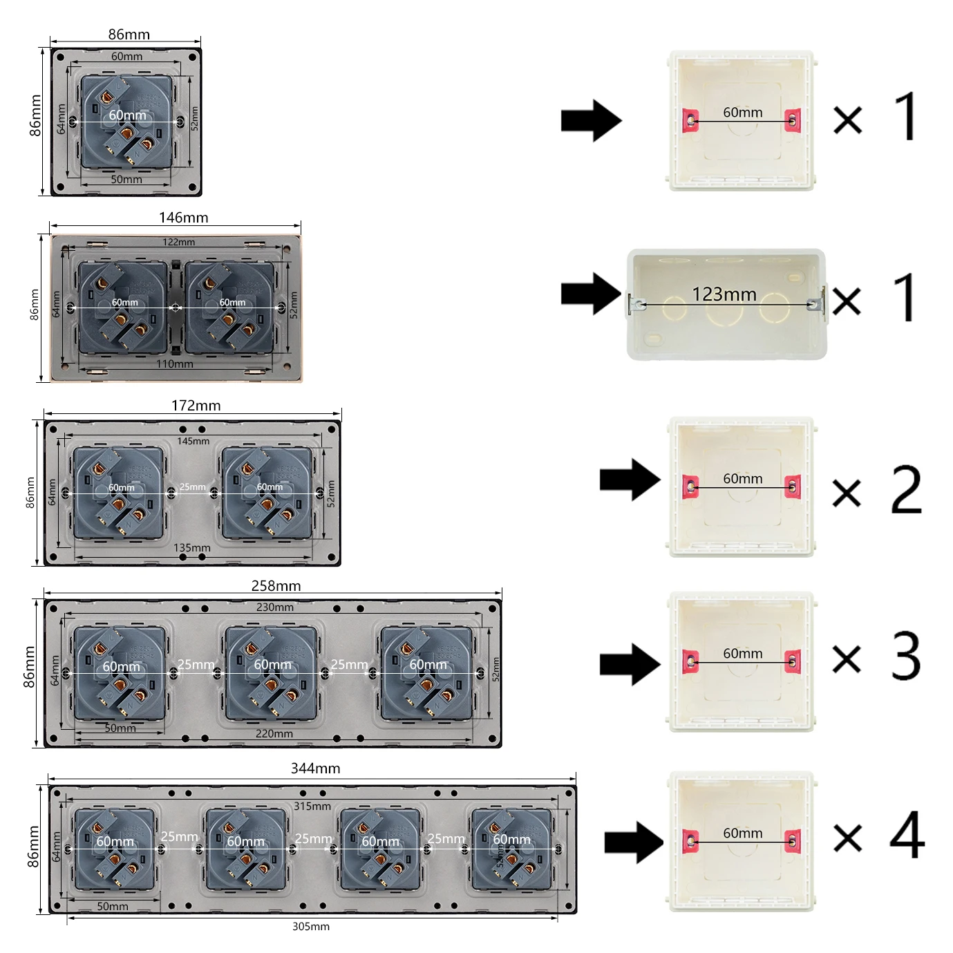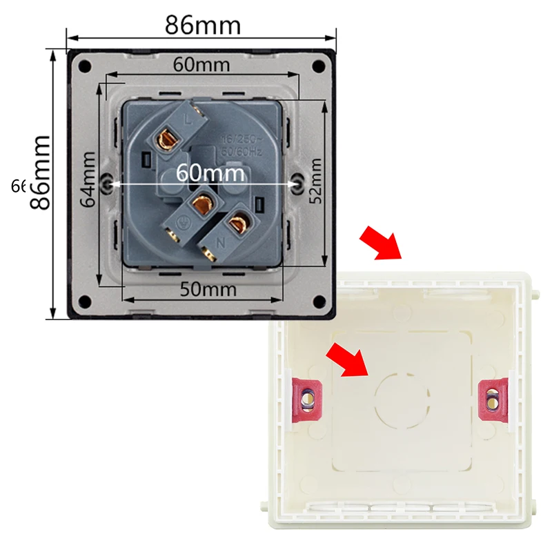 Этот продукт не может быть установлен в круговой установочной коробке, пожалуйста, тщательно Выберите нужный продукт перед покупкой. Вы также можете купить соответствующий 86 Тип квадратной монтажной коробки в нашем магазине.