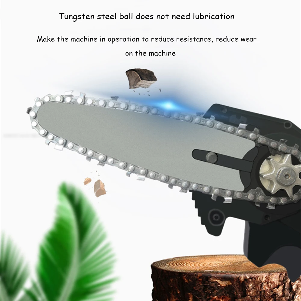 Перезаряжаемая Электрическая цепная пила, светильник и портативный, длительный срок службы батареи, без повреждений коры. Светильник вес тела, светильник и удобный, светильник вес конструкции, долгое время хранения и не устают руки. Двигатель из чистой меди, сильная мощность, быстрая резка, повышение эффективности. Практичная, быстрая скорость, низкое энергопотребление. Переключатель отличного качества, быстрая и медленная регулировка, плавное изменение скорости. Интеллектуальная плата управления цепью, защита от перегрузки, для удовлетворения ваших различных потребностей в конструкции. Специальная направляющая пластина, шарик из вольфрамовой стали не нужно смазывать, так что машина уменьшает сопротивление во время эксплуатации и уменьшает износ на машине. Маленький размер, можно держать одной рукой. Высококачественная направляющая цепь, глубокая закалка, более износостойкая, гладкая резка.