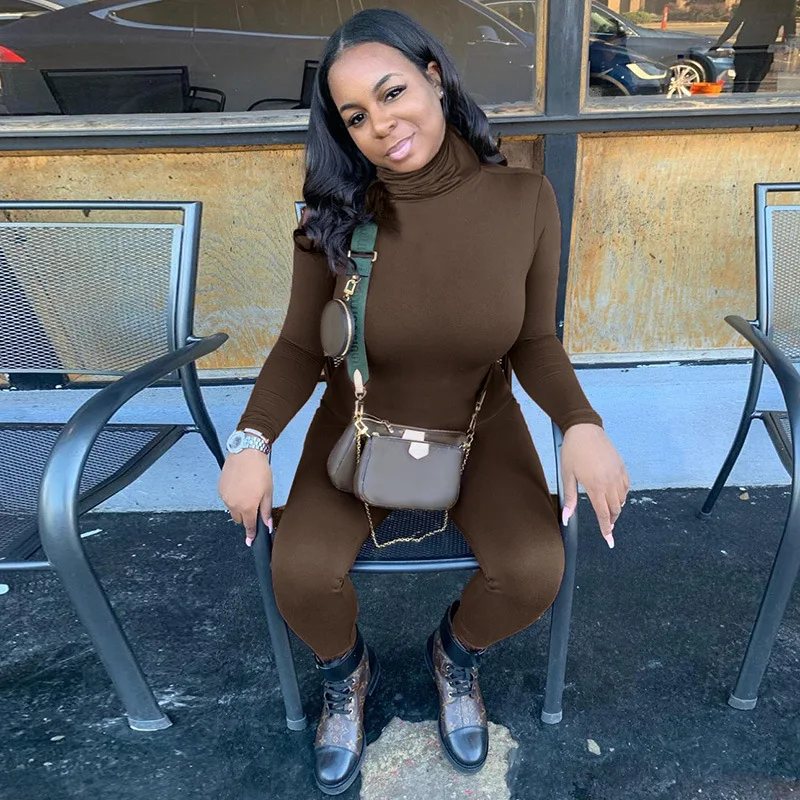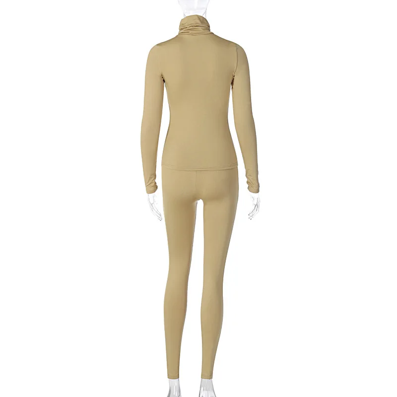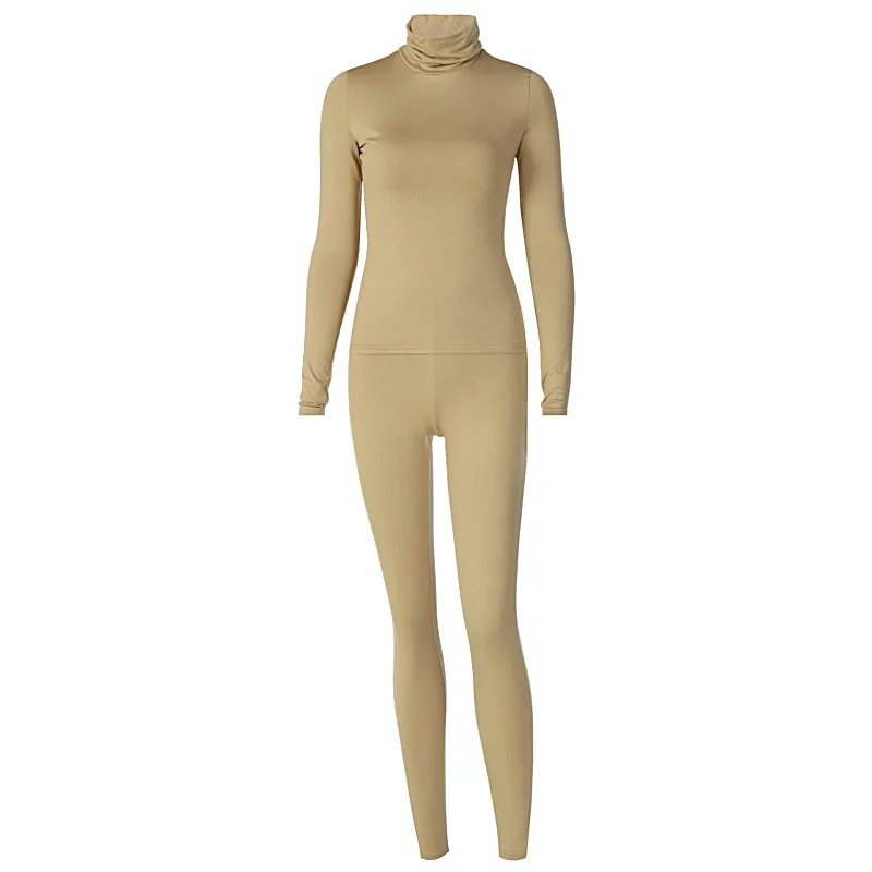 Женская одежда, водолазка с длинным рукавом, облегающая футболка, леггинсы, комплект из 2 предметов, Женский Осенний уличная одежда, спортивный костюм, соответствующие комплекты