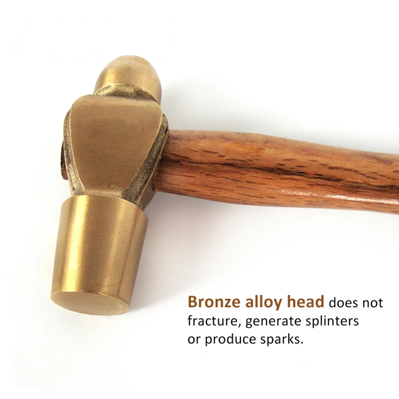 Особенности: -Латунная головка и деревянная ручка -Различный вес головы -Не Искрящийся молот Упаковка включает: -1 молоток