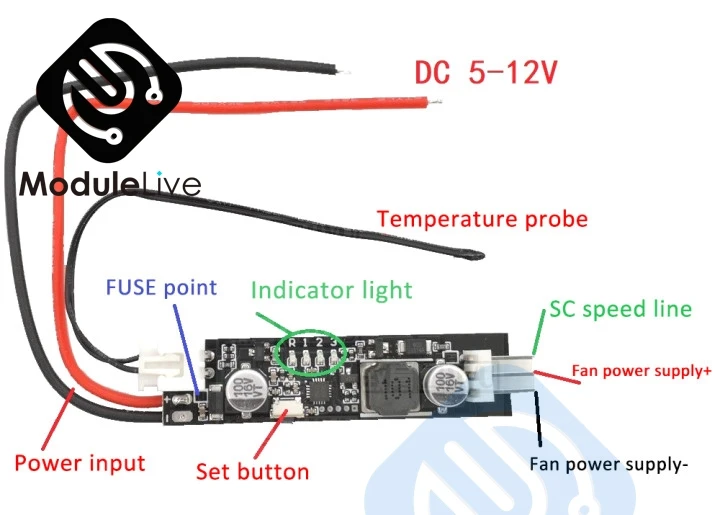 1. Этот контроллер поддерживает контроль температуры и скорости вентилятора на 2-3 провода с током 5-12 В постоянного тока не более 0,9 А благодаря плавному управлению снижением напряжения, И поддерживает низкотемпературное отключение питания вентилятора.