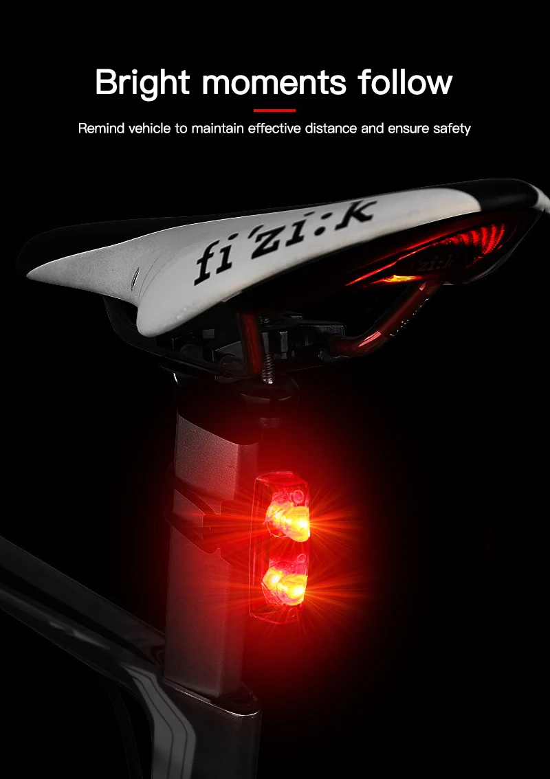 Задний фонарь автоматически загорается во время езды. Чем быстрее скорость, тем ярче будет задний фонарь.