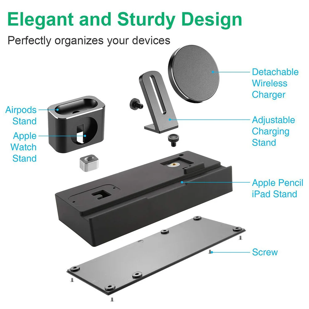 2. Съемное Беспроводное зарядное устройство: Этот зарядный держатель для док-станции изготовлен из мягкой отделки, против царапин, против скольжения, против попадания воды и масла, легко чистится, что предотвращает царапины устройств Apple.