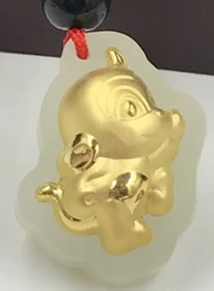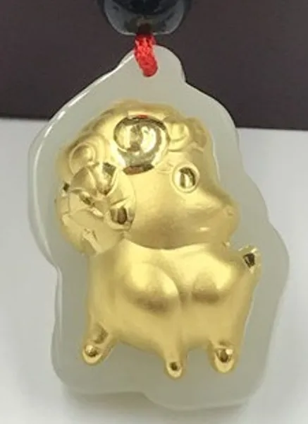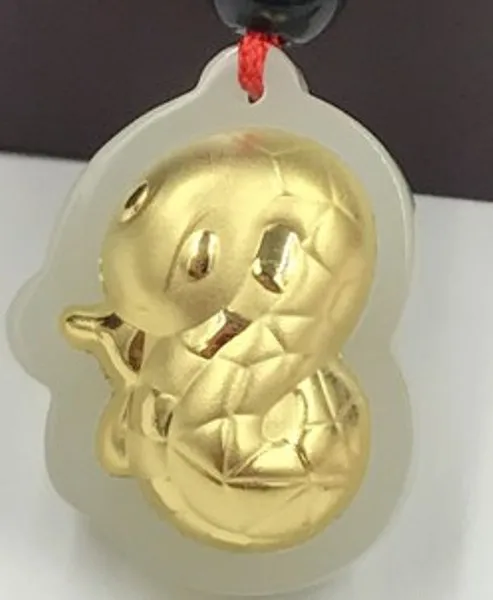 Металл: Желтое Золото 24К Основной камень: нефрит Размер: около 25x18 мм