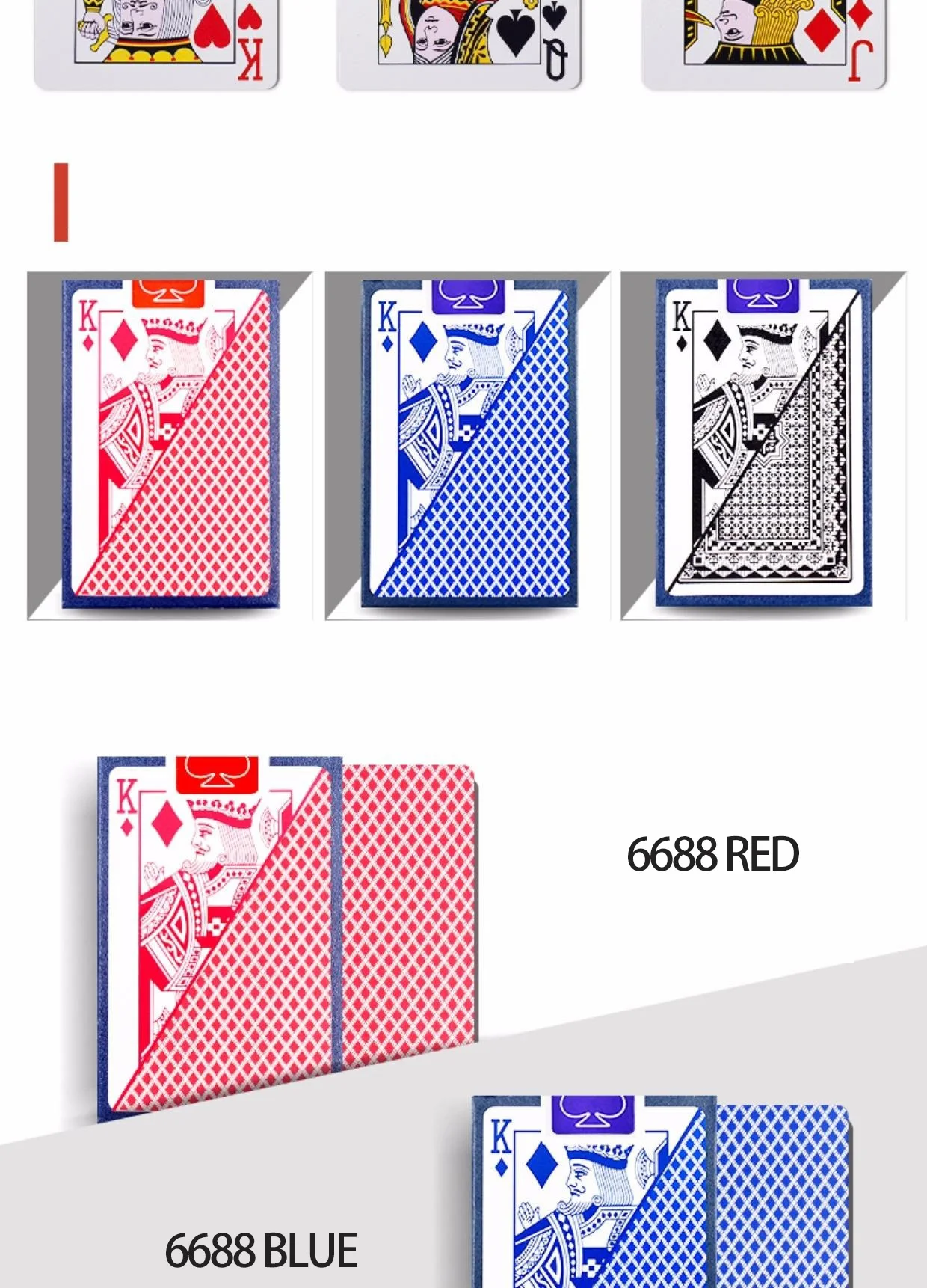 Полностью пластиковые водонепроницаемые игральные карты Особенности: весь пластиковый материал (хорошая эластичность, моющийся, четкая печать, не выцветает) Размер: 88x58 мм Цвет: синий/красный/черный Вес: 130 г Количество: 55 листов (включая один рекламный щит) Модель: 5735/5639/6688/6828/6939 Если вам нужно смешать и сочетать разные цвета для доставки, пожалуйста, сделайте примечание в столбце Примечания!
