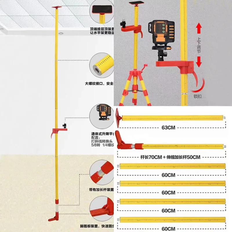 4,2 М телескопический шест удлинить кронштейн держатель Поддержка подставка стойка для потолочного светильника линии выравнивания стержень для 1/4 "и 5/8" лазерный уровеньВведение продукта:Технические характеристики:Устройство быстрого фиксации или выходаСильная, стабильная поддержкаБыстрый замок или отпустите подъемную платформуИнтерфейс 5/8 "и/1/4" может быть подключен к различным инструментамРегулируемый диапазон подъема 70 ~ 420 см (5 секций)Вес: 2,4 КгПримечание:1. Этот кронштейн, убедитесь, что когда вы можете использовать его, он достаточно стабильный, пожалуйста, обратите внимание на защиту лазерного уровня.2. Из-за ручного измерения возможна погрешность в 1-2 см, надеемся, что наши клиенты это поймут