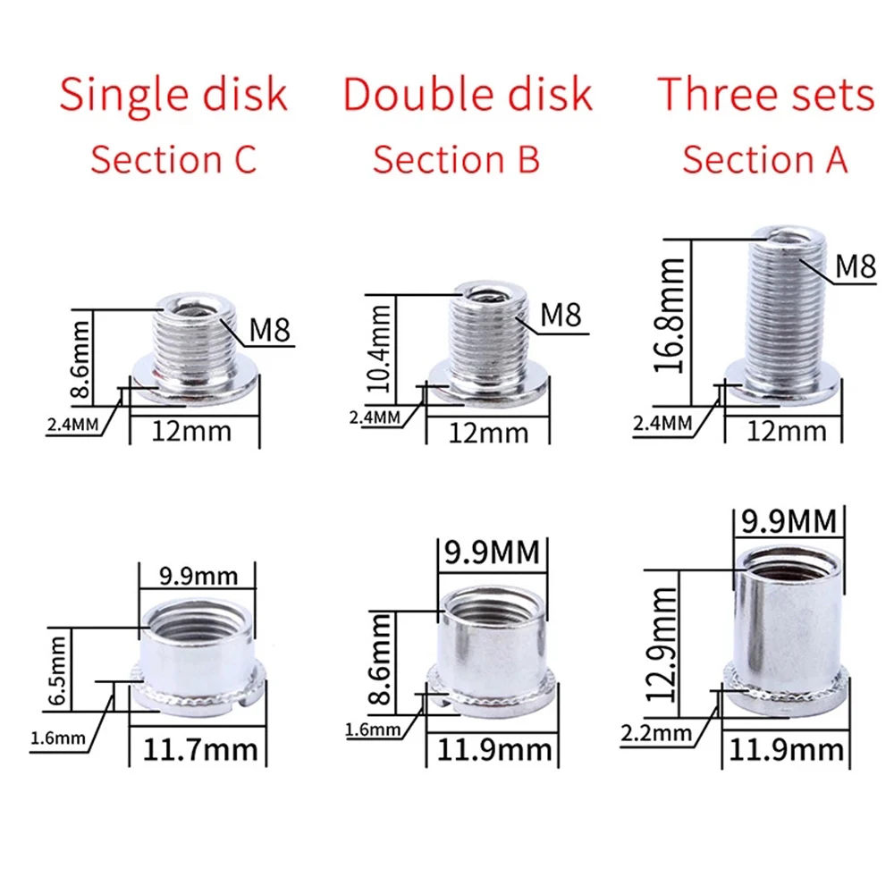 Тип: зубной диск для ногтей Материал: сталь Резьба: M8 Цвет: серебристый Количество: 5 шт. Посылка включает в себя: 5 зубных дисков Спецификация: C обычно используется для однодисковых дисков. B используется для двойного диска А используется для трех дисков Проверьте свои собственные спецификации винта перед покупкой, чтобы избежать покупки неправильно.