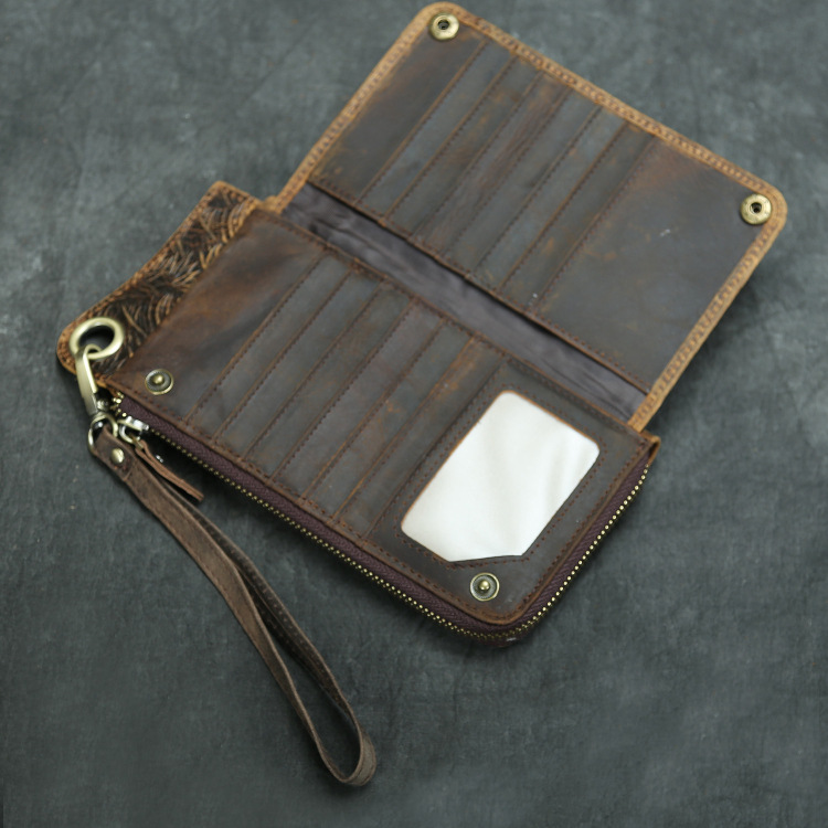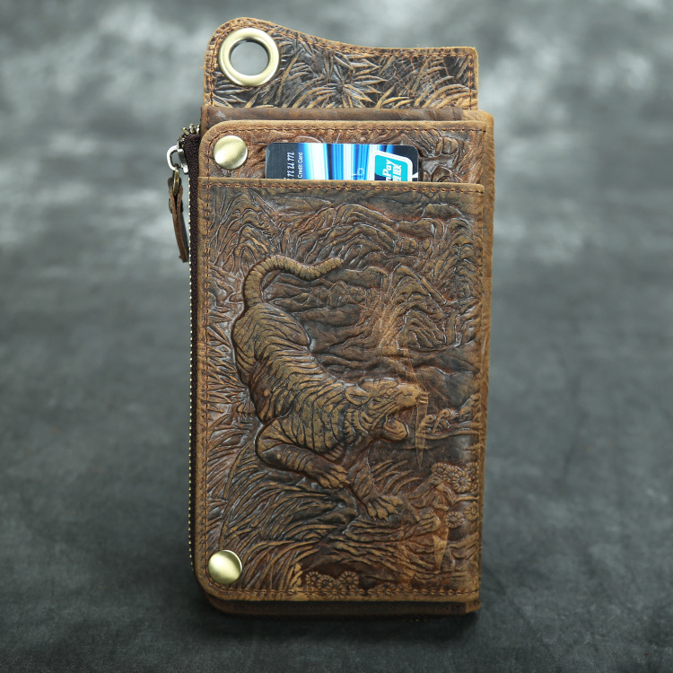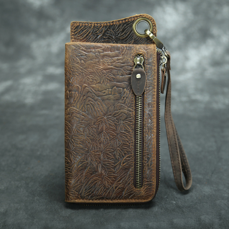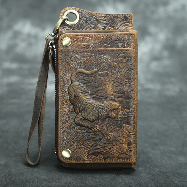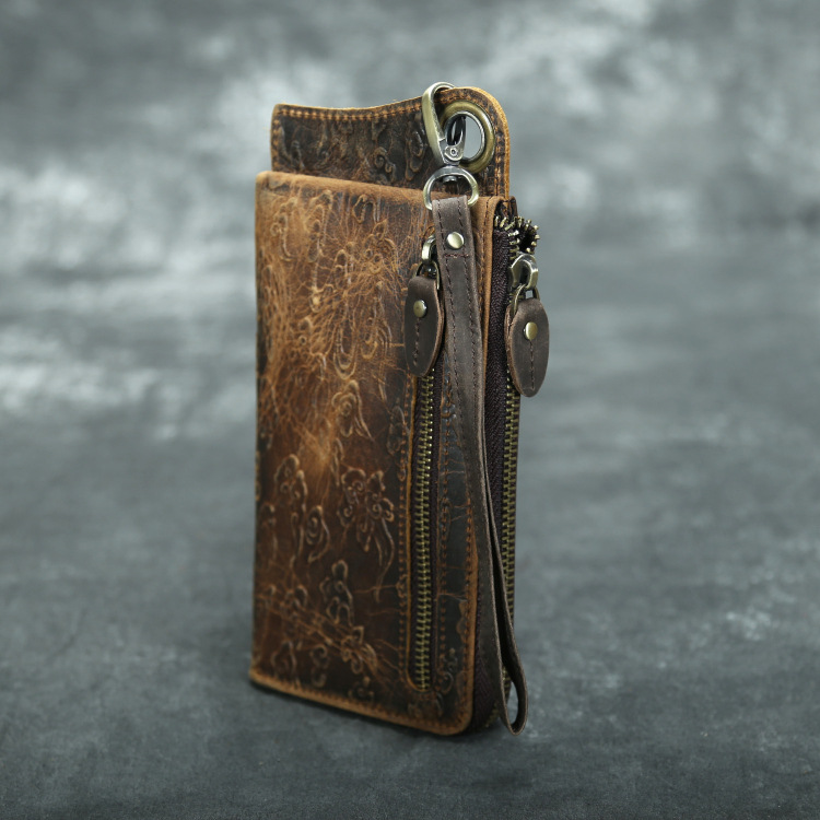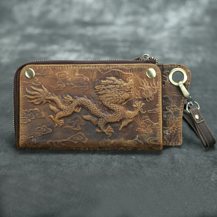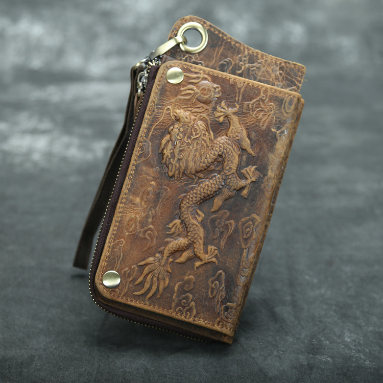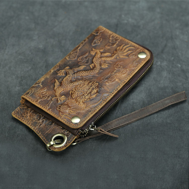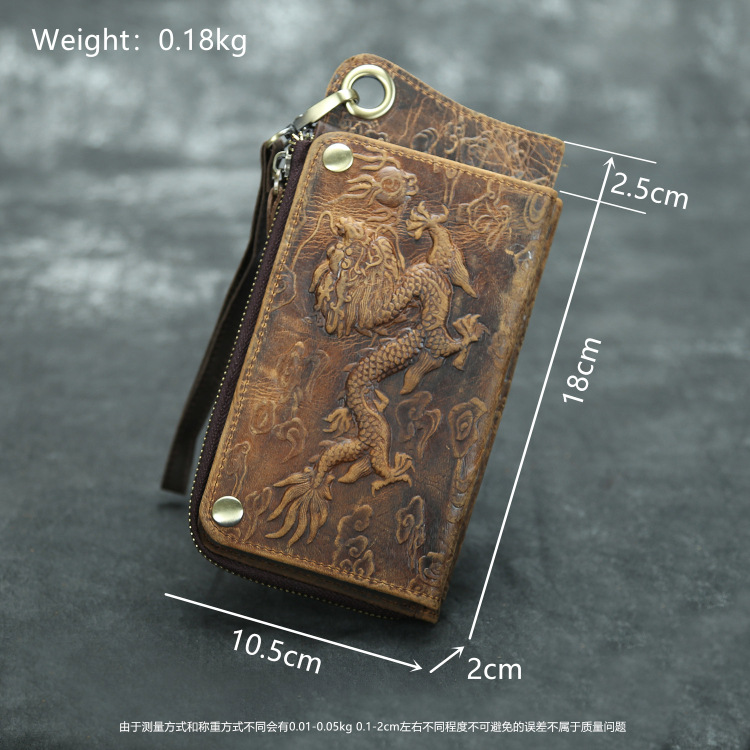 Мужские кошельки, длинные, Ретро стиль, с рисунком дракона, с отделением для карт, мужской кошелек, на молнии, клатч, сумка для сотового телефона, с карманом, из натуральной кожи, кошелек для мужчин
