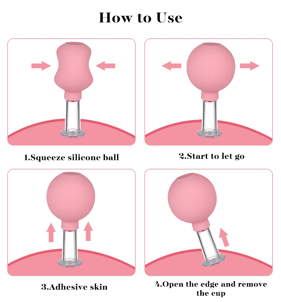 5. Есть в общей сложности 4 размера, которые могут быть использованы гибко в соответствии с различными частями тела, что дает вам лучший опыт использования. Используется для вакуумный массаж для лица.