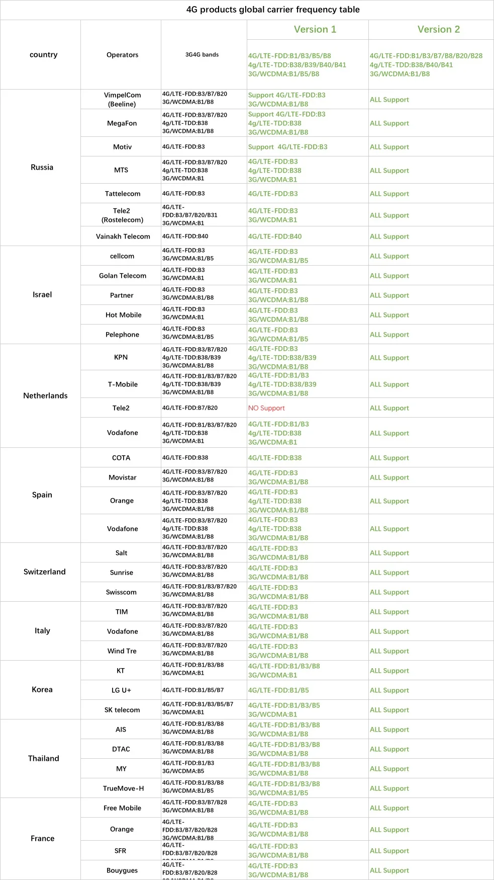 Если вы не знаете диапазон 4G, используемый в вашей стране, пожалуйста, откройте следующий веб-сайт: