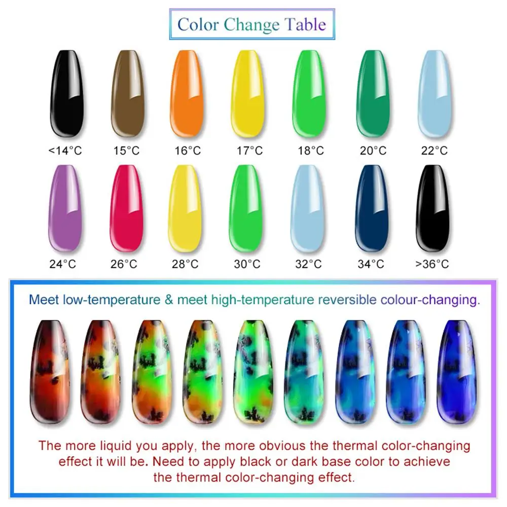 Необходимо нанести черный или темный базовый цвет для достижения эффекта изменения теплового цвета.