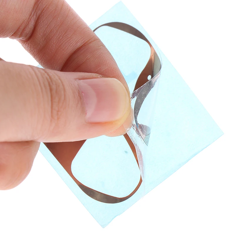 2) Place the top sticker upside down on the bottom sticker so that the adhesive side faces upwards on the body portion.