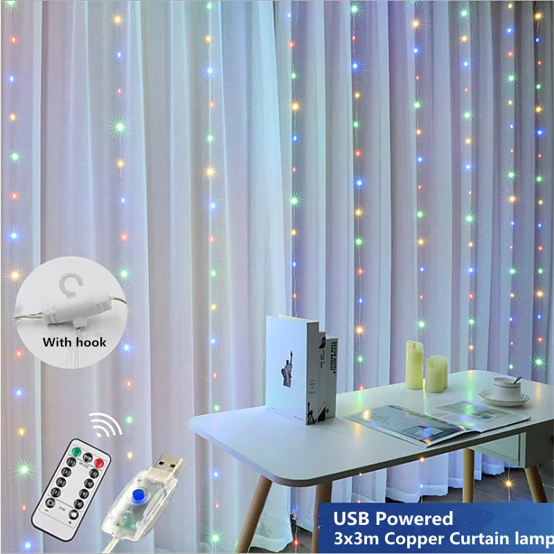 3M Curtain LED Fairy String Lights Garland USB Powered Remote Control Warm White Multicolor Christmas Party Home Decoration Lamp