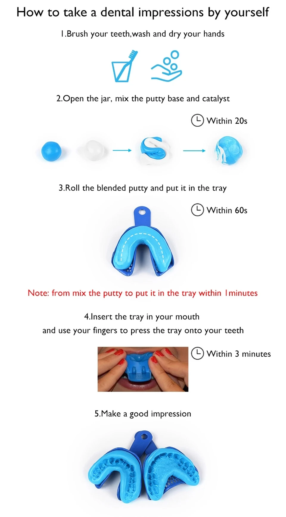 Вам нужно укусывать достаточно глубоко в шпатлевку, чтобы полностью запечатлеть свою линию десен. Мягко укус вплоть до тех пор, пока вы чувствуете, что ваши зубы приходят в светильник свяжитесь с нижней частью лоток. Вы должны почувствовать, как шпатлевка выдавливается из лотка, обволакивая зубы и достигая десен. Вы также будете чувствовать себя немного шпатлевкой на крыше рта за зубами. Для ваших более низких впечатлений, это помогает приклеить язык к верхней части лотка, принимая ваши стоматологические впечатления.