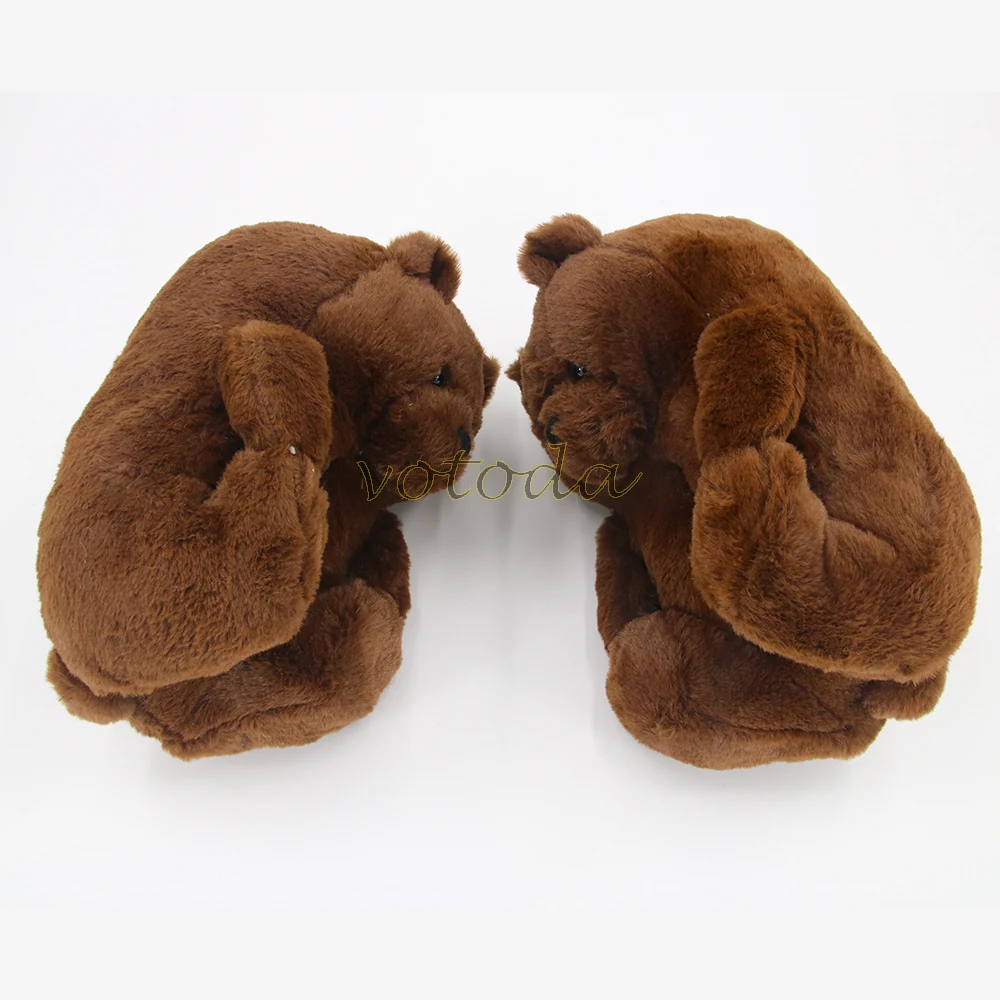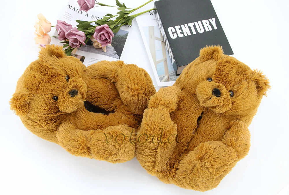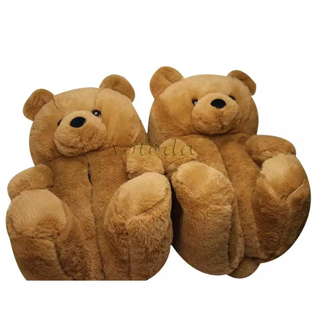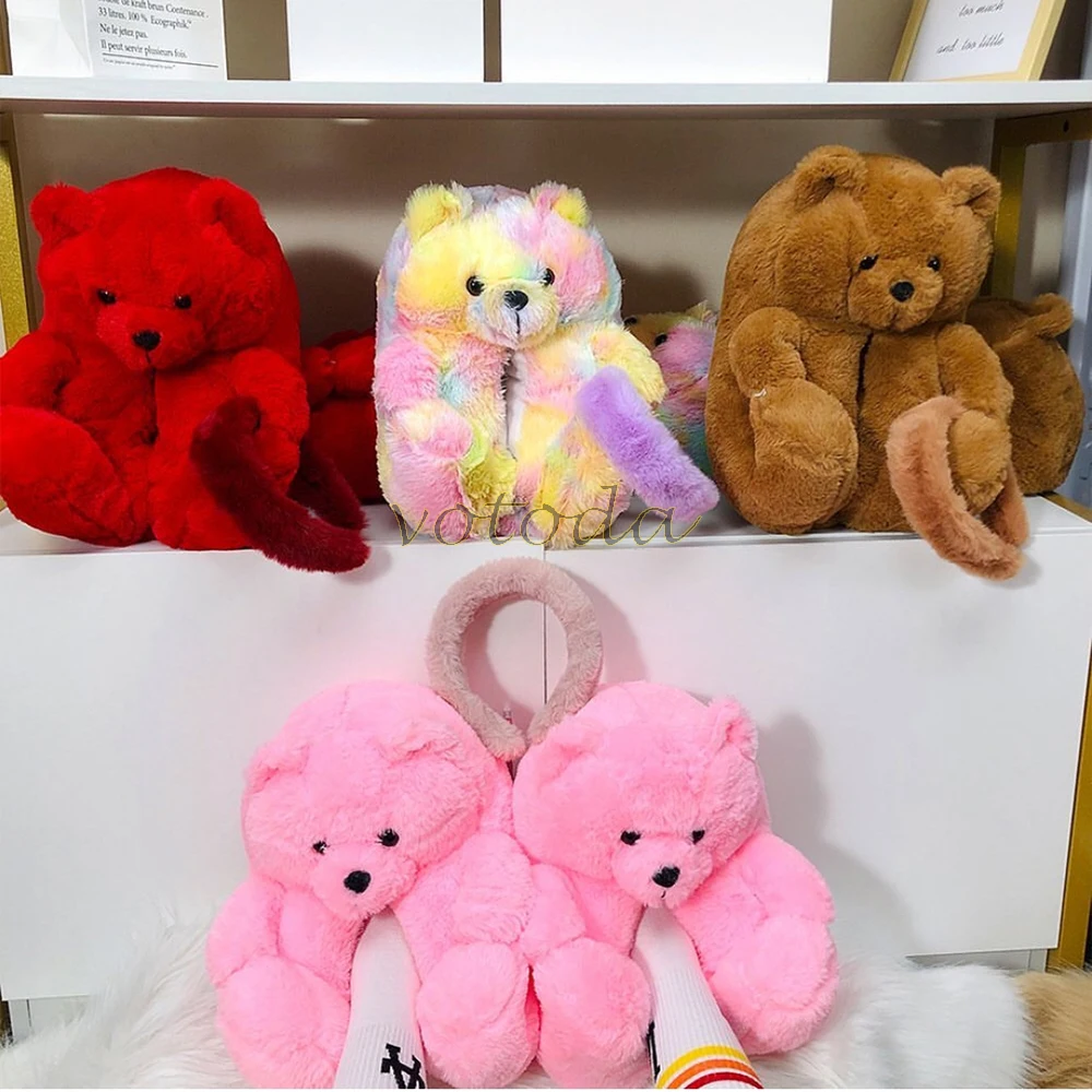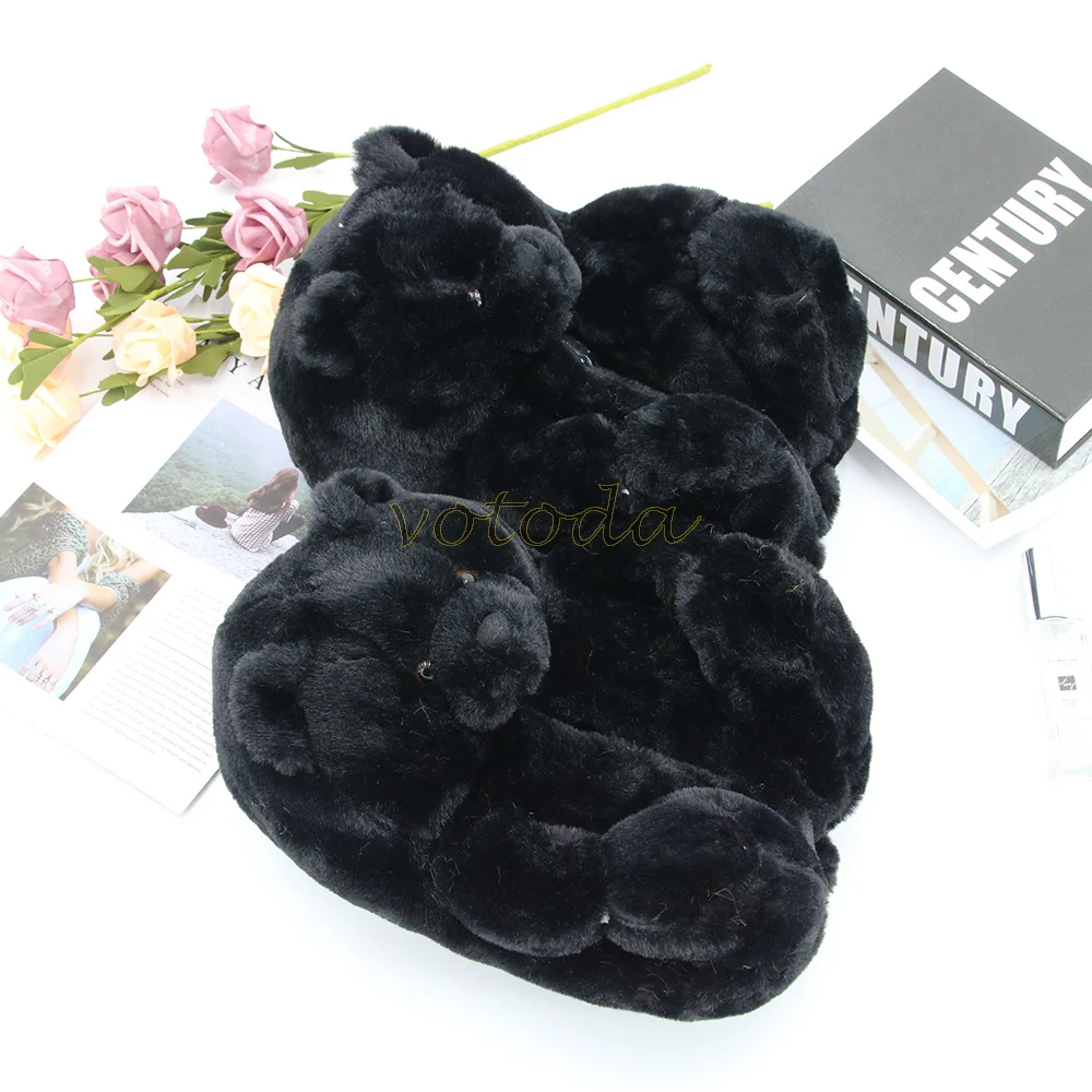 Женские плюшевые тапочки с плюшевым мишкой; Домашние тапочки с милым мишкой из мультфильма; Зимние теплые меховые Шлепанцы из искусственного меха; Женские меховые шлепанцы