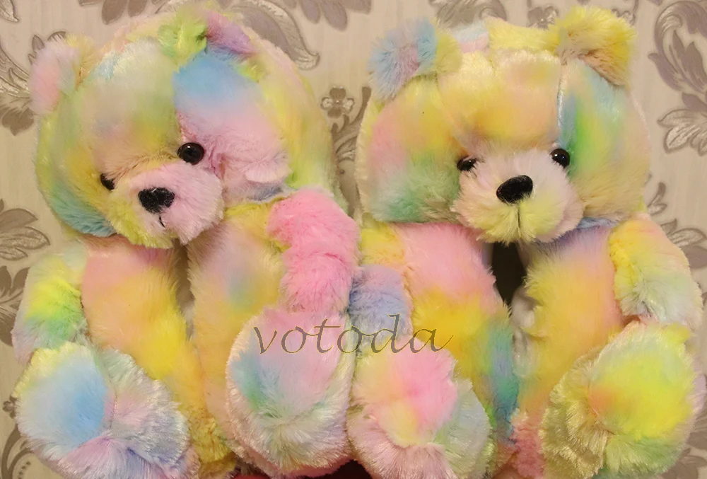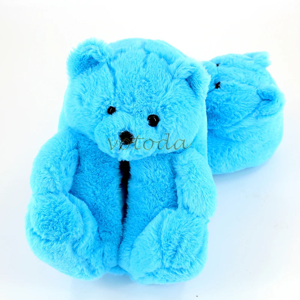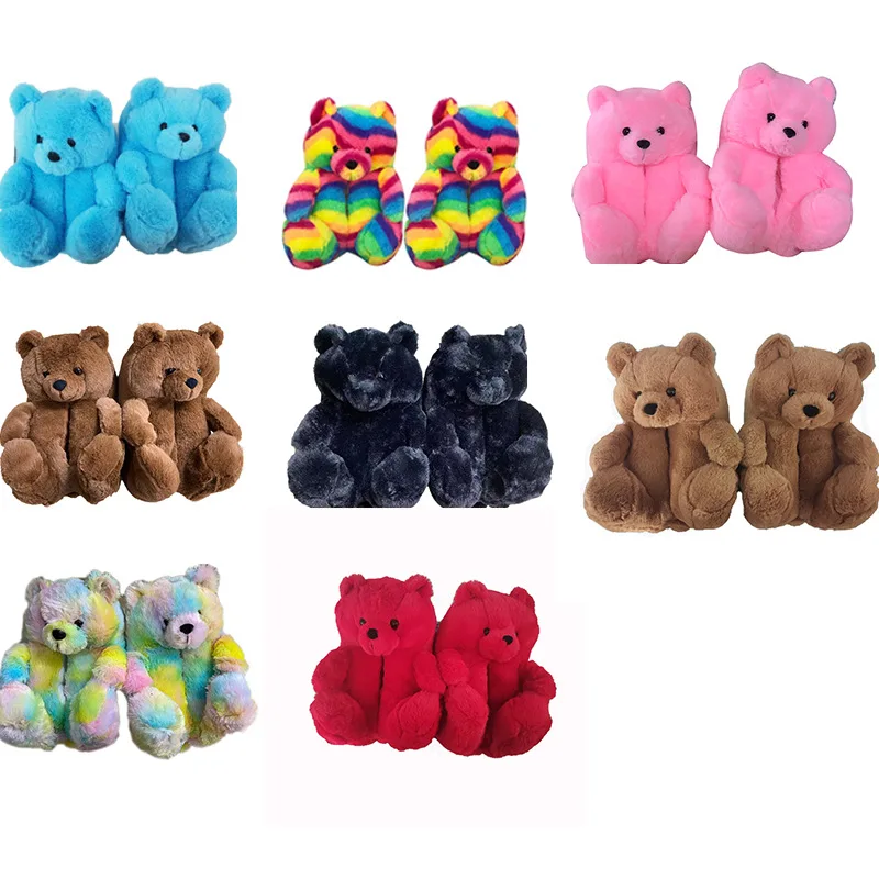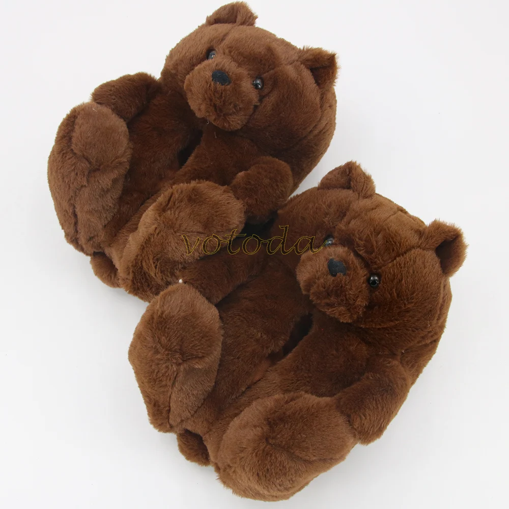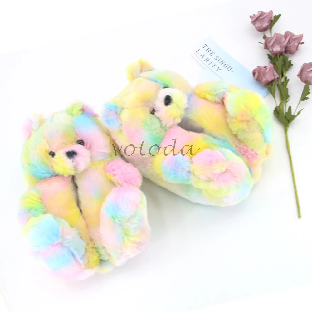 Женские плюшевые тапочки с плюшевым мишкой; Домашние тапочки с милым мишкой из мультфильма; Зимние теплые меховые Шлепанцы из искусственного меха; Женские меховые шлепанцы