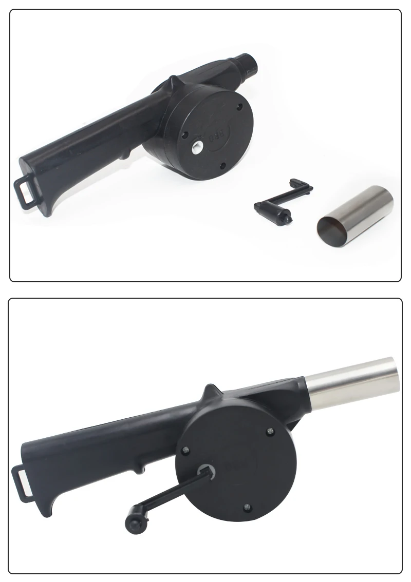 1. Вентилятор для барбекю изготовлен из ABS + нержавеющей стали; 2. Поможет вам легко надуть воздух для гриля для барбекю. 3. Вентилятор для барбекю широко используется в домашних условиях, на открытом воздухе для кемпинга, пикника.