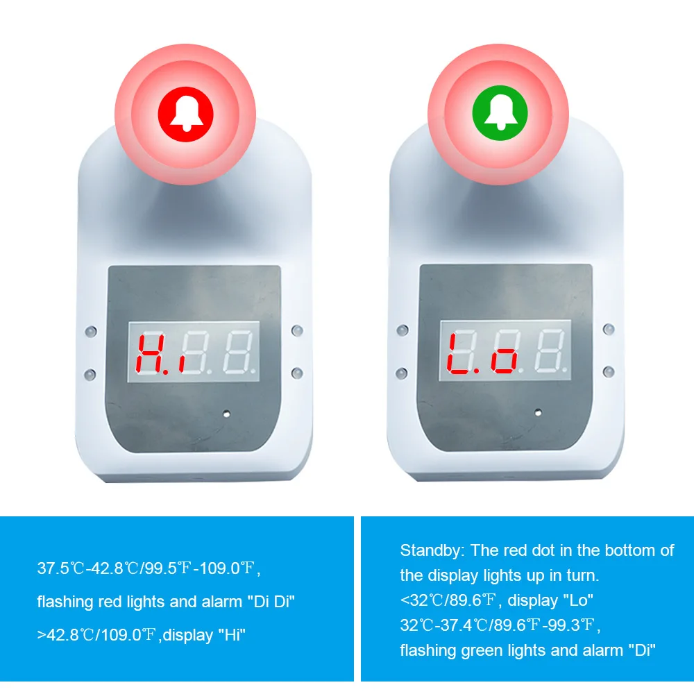 Этот Бесконтактный инфракрасный термометр с настенным креплением очень прост в использовании и удобен для тела и предметов. Вам не нужно связаться с ним, и точные показания будут автоматически отображаться на экране с ЖК-дисплеем. С сигнализацией, 0,1 S Быстрый тест и самообслуживание.