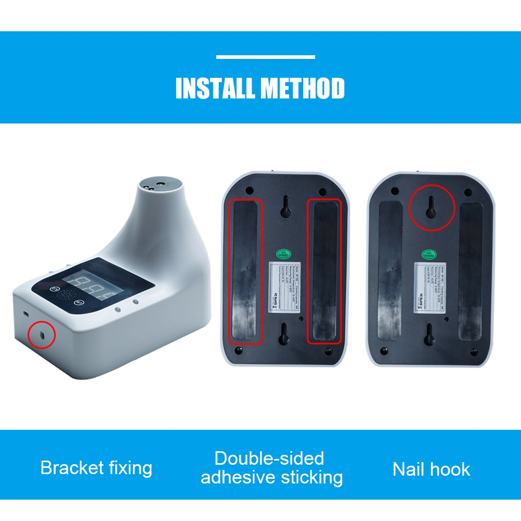 Бесконтактный дизайн: этот настенный термометр для лба можно установить на стену и измерить температуру человеческого тела на расстоянии 5-10 см (2,0in-3,9 дюйма) от лба. При приближении к термометру считывание автоматически появится на экране быстро с самообслуживанием.