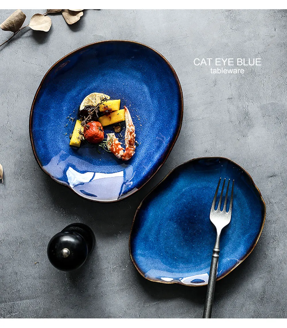 Скандинавская керамическая тарелка для ужина, Бытовая керамика, неправильная тарелка, салат, ассортимент тарелок, посуда, большая тарелка, тарелка, 1278