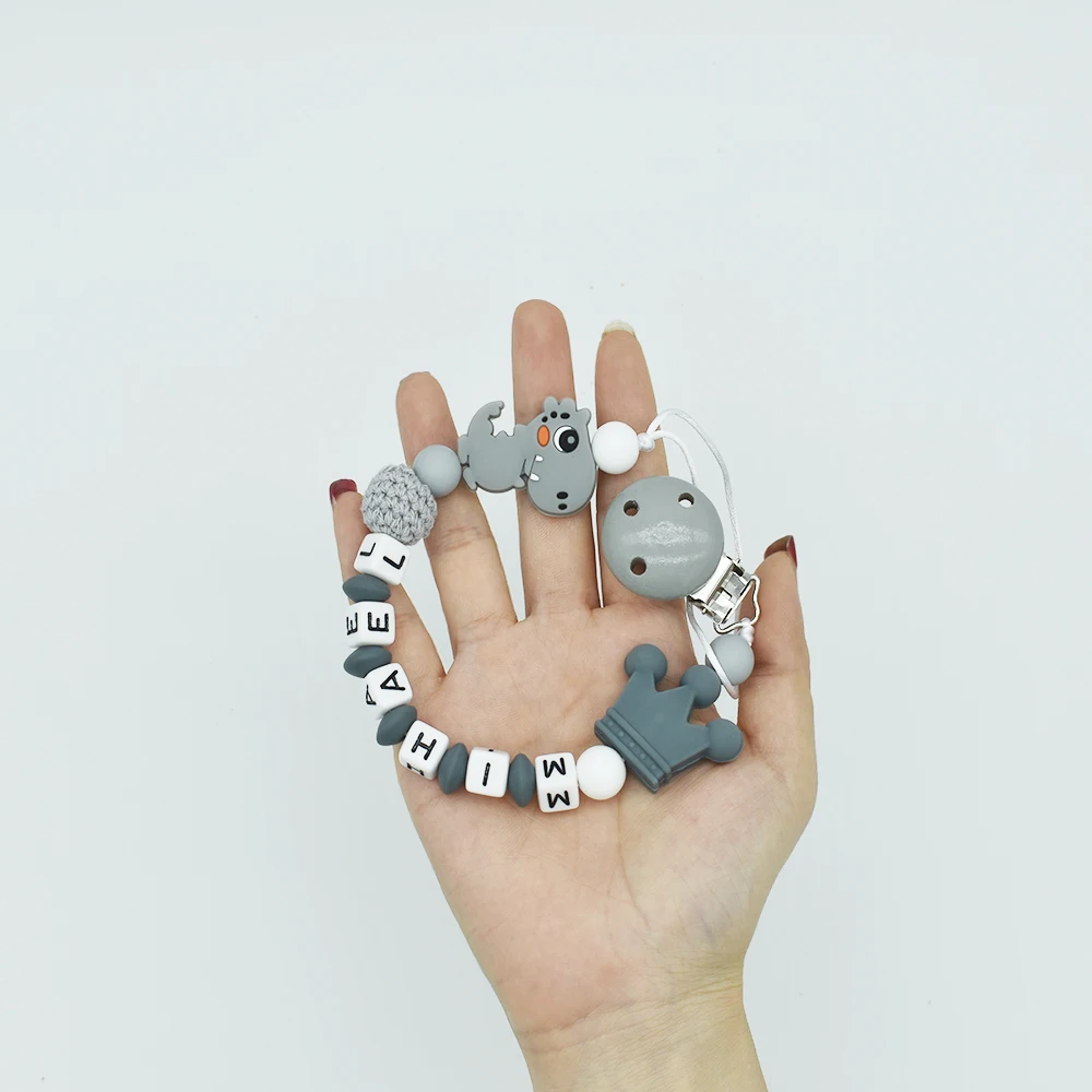 Персонализированные силиконовые цепочки для соски с именем Ручной работы Бусины динозавра цепочка для прорезывания зубов детский Прорезыватель соски клипсы держатель цепочка набор