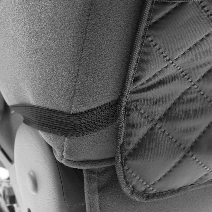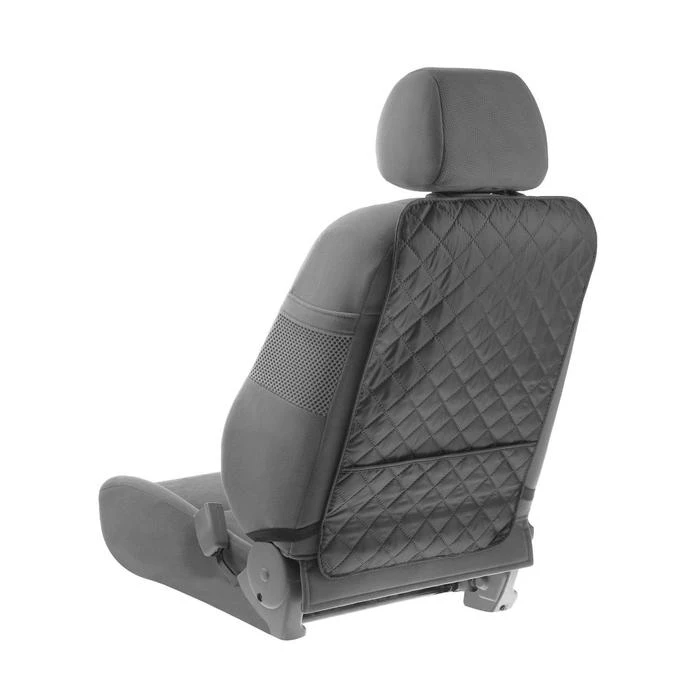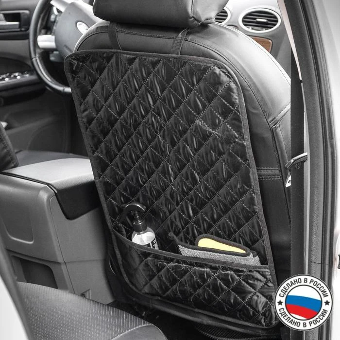 Накидка - незапинайка - это незаменимая вещь для автомобиля, чтобы спинки ваших сидений сохранялись в чистоте. Больше не нужно беспокоиться, что ваш ребенок запачкает их ножками, а строгий классический стиль будет идеально гармонировать с салоном авто. Карман поможет поддержать порядок в автомобиле и держать под рукой самое нужное. Ткань легко чиститься влажной тряпкой или салфеткой. Крепится резинками, размер накидки 60 см * 40 см.
