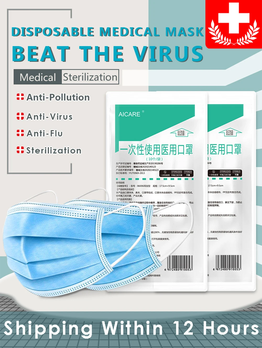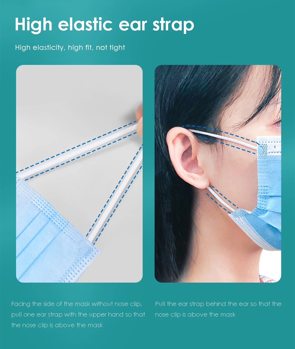 Особенности: 1. Эпоксидная стерилизация продукт стерильный 2. Трехслойная фильтрация 3. Регулируемая полоска для носа, лучше подходит для лица 4. Водонепроницаемые и дышащие, не боятся капель 5. Испытание на безопасность ткани 6. Мягкая и удобная подкладка 7.3D трехмерная конструкция сложения