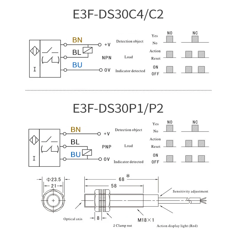 Характеристики модели: E3F-DS30C4/C2/P1/P2