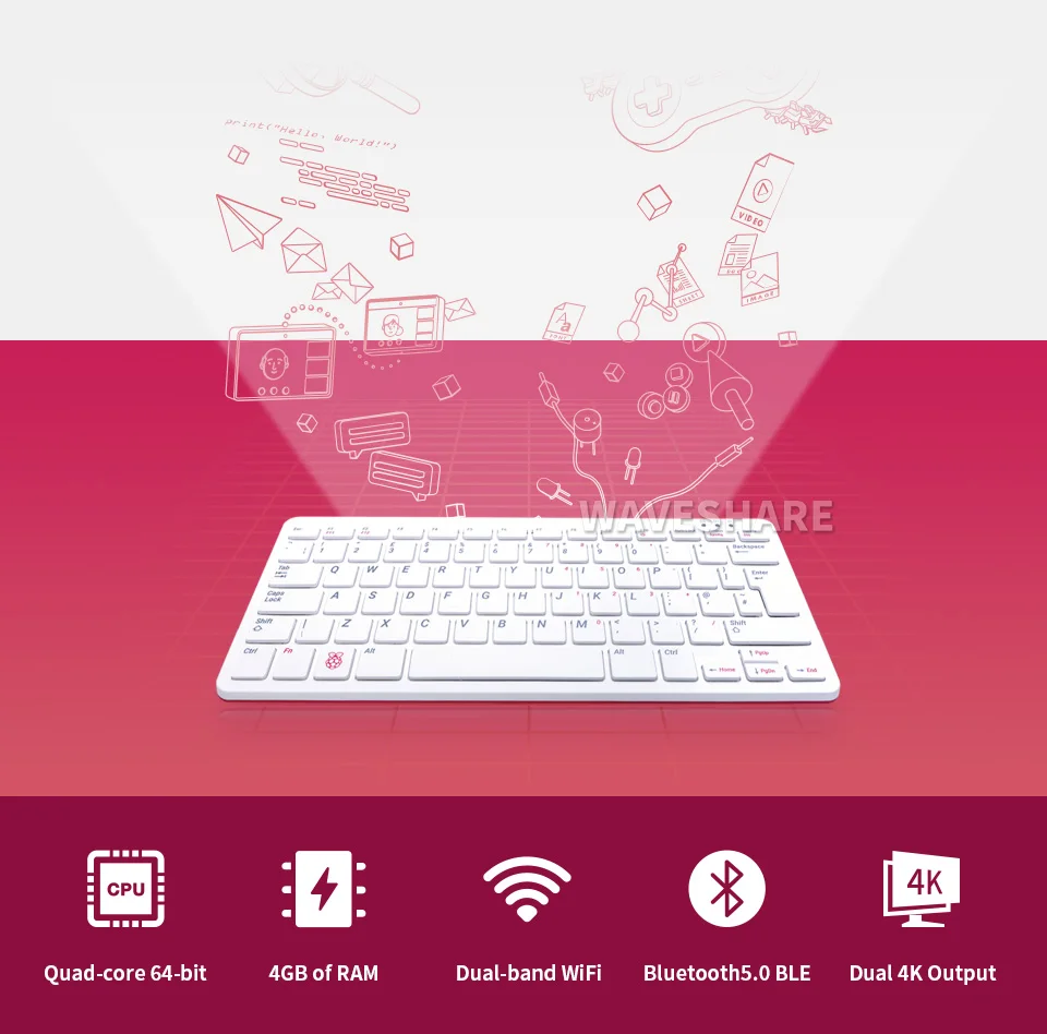 Raspberry Pi 400 включает специальную плату на основе Raspberry Pi 4. Обладая таким же мощным процессором, Raspberry Pi 400 имеет специально разработанные термосы, чтобы ваш компьютер был крутым и бесшумным, пока вы усердно работаете.