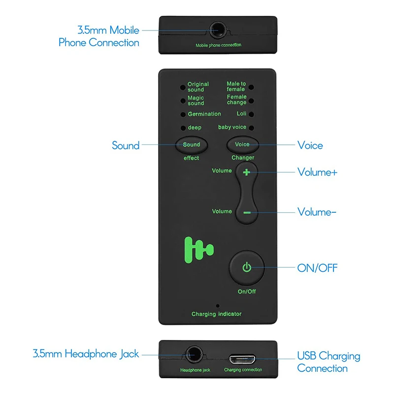 M1 mini voice changer поставляется с 4 звуковыми эффектами и 4 голосовыми изменением, наслаждайтесь изменением звука по вашему желанию.