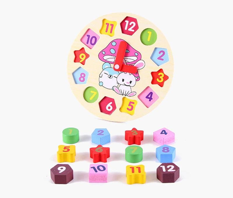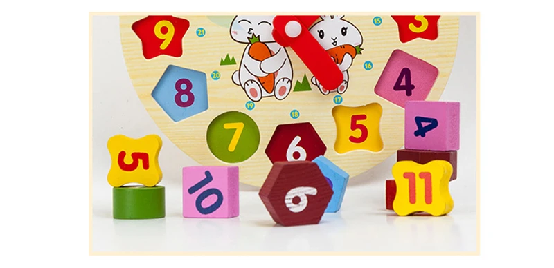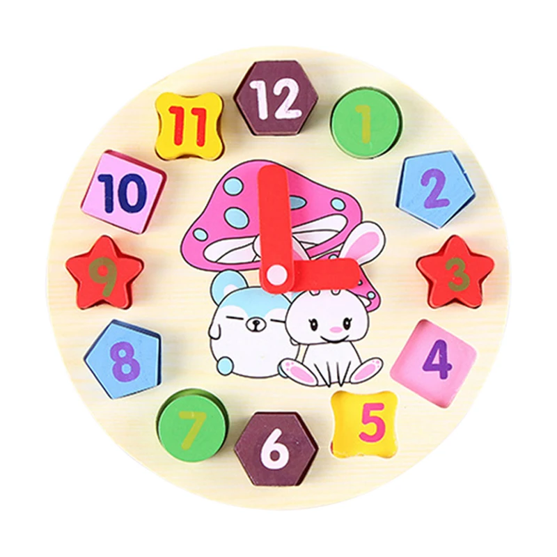 Kids Toys Montessori Cartoon Animal Wooden Beaded Geometry Digital Clock Educational Toys Gadget Matching Clock Toy For Children