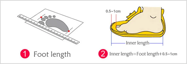 Примечание: Пожалуйста, выбирайте правильный размер в соответствии с длиной стопы вашего ребенка (внутренняя длина = длина стопы + 1 см)