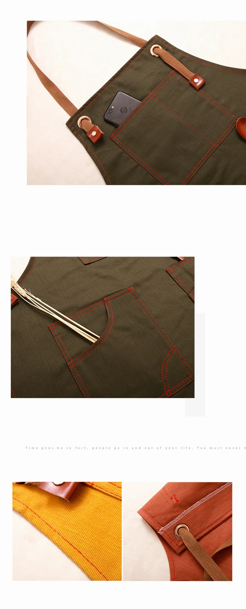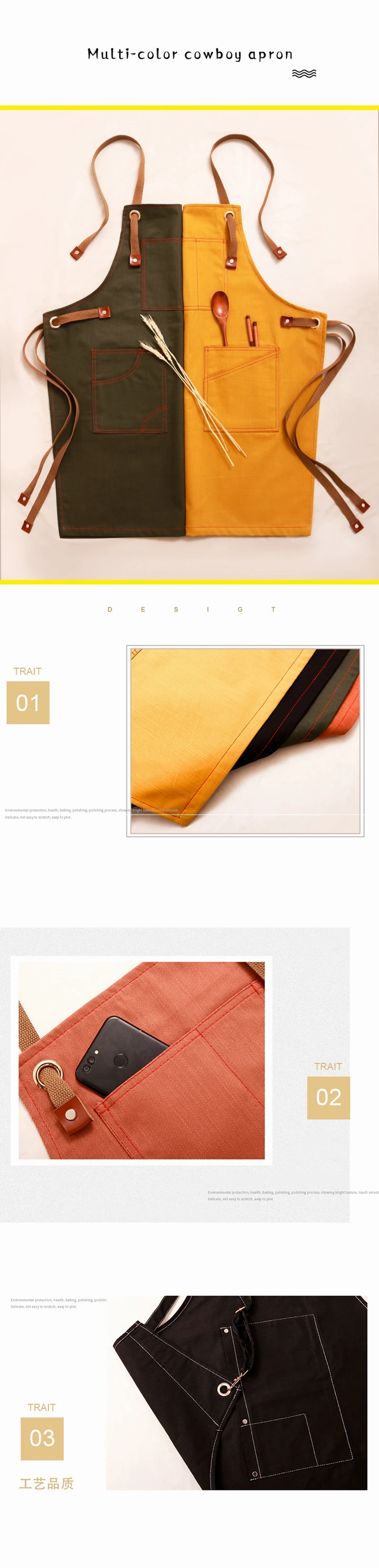 Джинсовый фартук японский бариста Пользовательский логотип печать цветок ресторанный дизайн молочный чай магазин парикмахерская Рабочая одежда пояс модный фартук