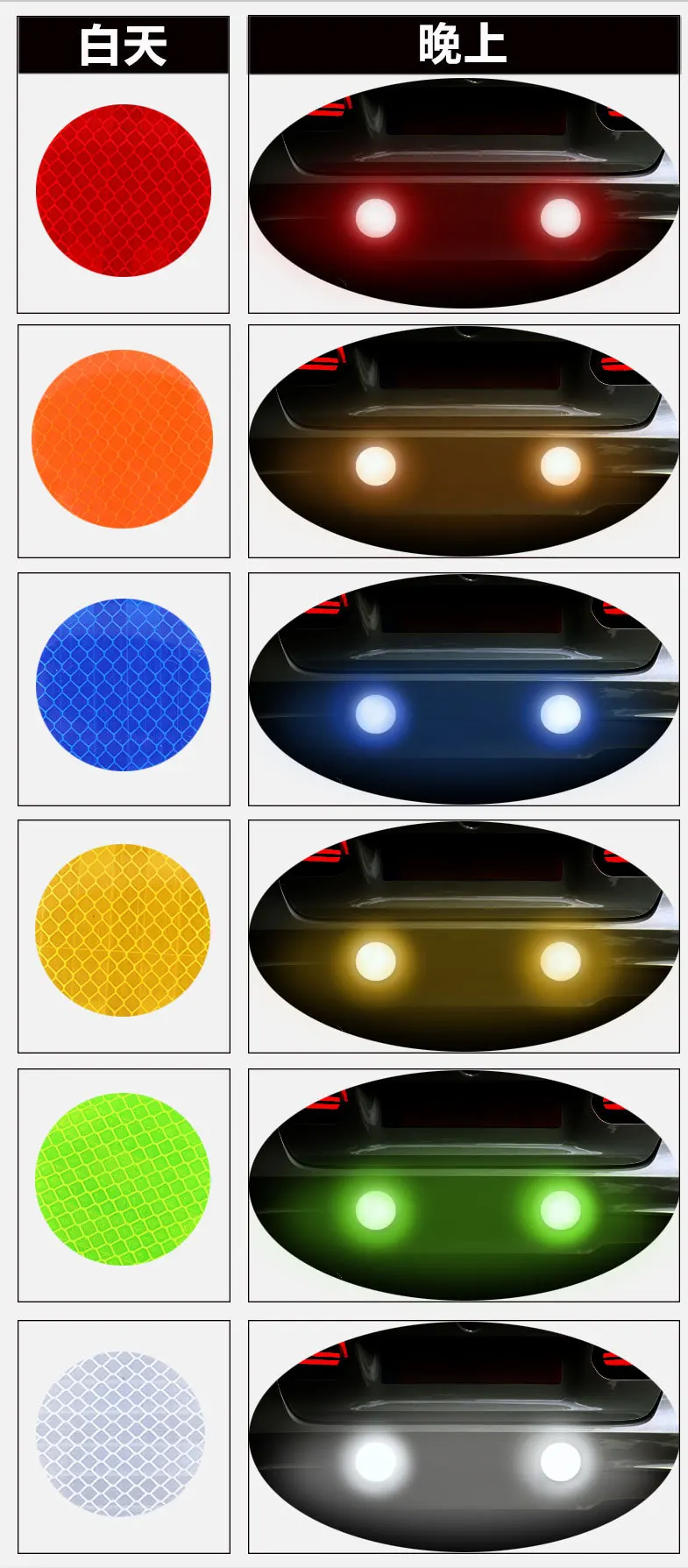 Функция:Предупреждение о безопасности, наклейка против столкновений, украшение вашего автомобиля, покрытие царапин и т. д.