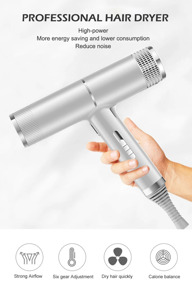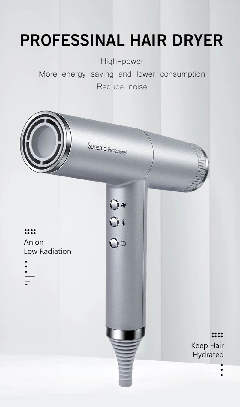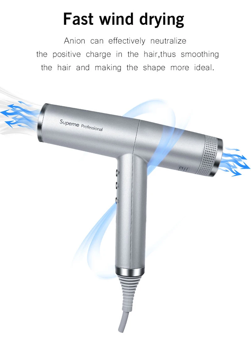 1. Функция отрицательных ионов: Анионный генератор фен для волос производит миллионы отрицательных ионов для защиты кожи головы от тепловых повреждений, гладких волос. 2. Магнитные насадки: фен поставляется с магнитными насадками, поэтому вы можете легко и быстро отрегулировать. 3. Быстрая Сушка с мощным двигателем в сочетании с технологией мультипликатора воздуха, для быстрой сушки и точной укладки. Упаковочный лист: 1 * фен для волос 1 * насадки 1 * инструкции на английском языке