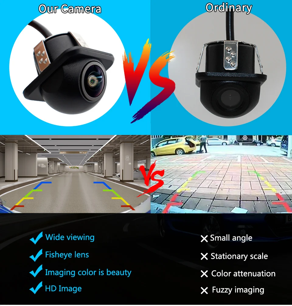 * Универсальная автомобильная резервная камера ---, высокая яркость, угол обзора 170 градусов, не беспокойтесь о зоне слепых пятен, водонепроницаемость IP67, хорошо работает при мытье автомобиля или плохой погоде, фантастический эффект ночного видения.